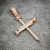 Dije De Cruz Clavo Con Swarovski Blanco En Oro Rosa 18k 3.0gr 3.8cm
