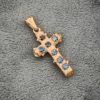 Dije De Cruz Con Dimantes Azules 48 Pts Oro Rosa 18K 3.65 gr 3.5 cm