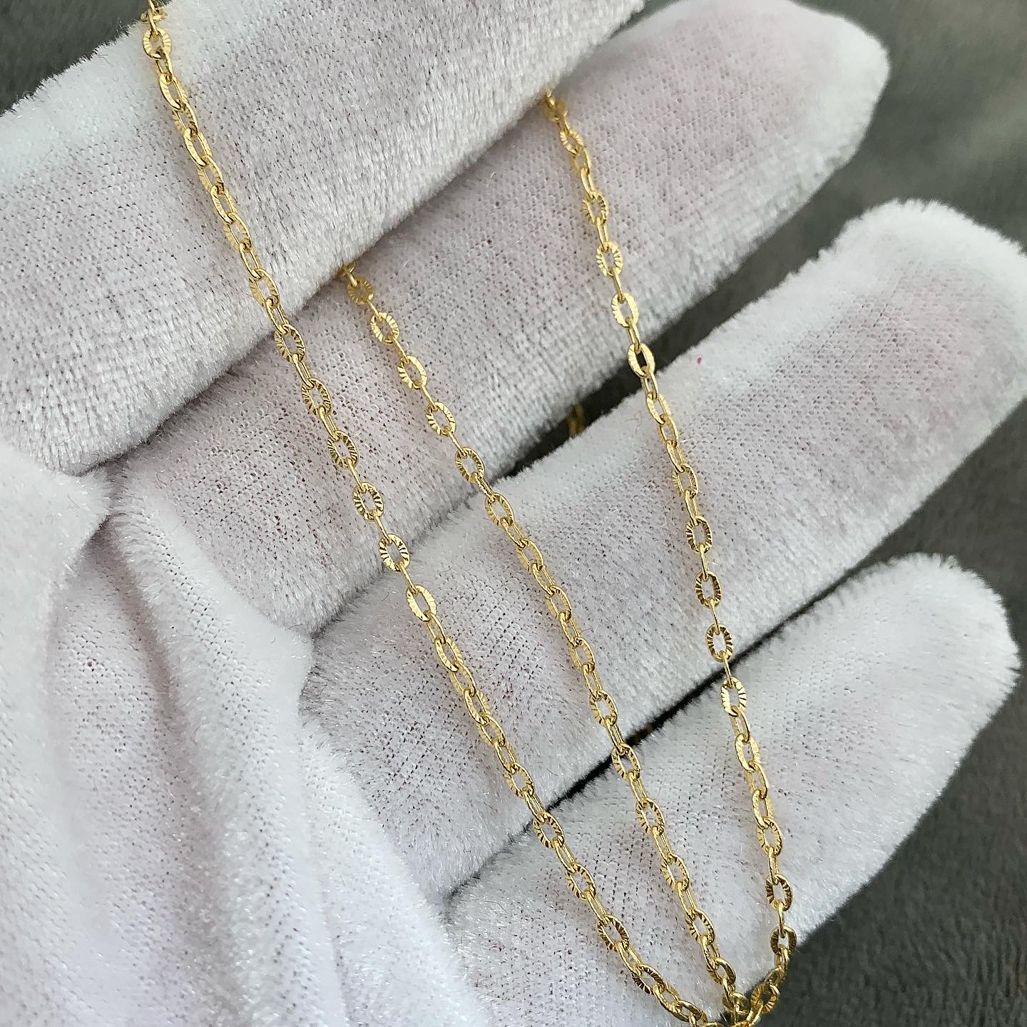 45cm Cadena Tejido Rolon Diamantada Oro Amarillo 18k Italy 1.5gr 1.3mm