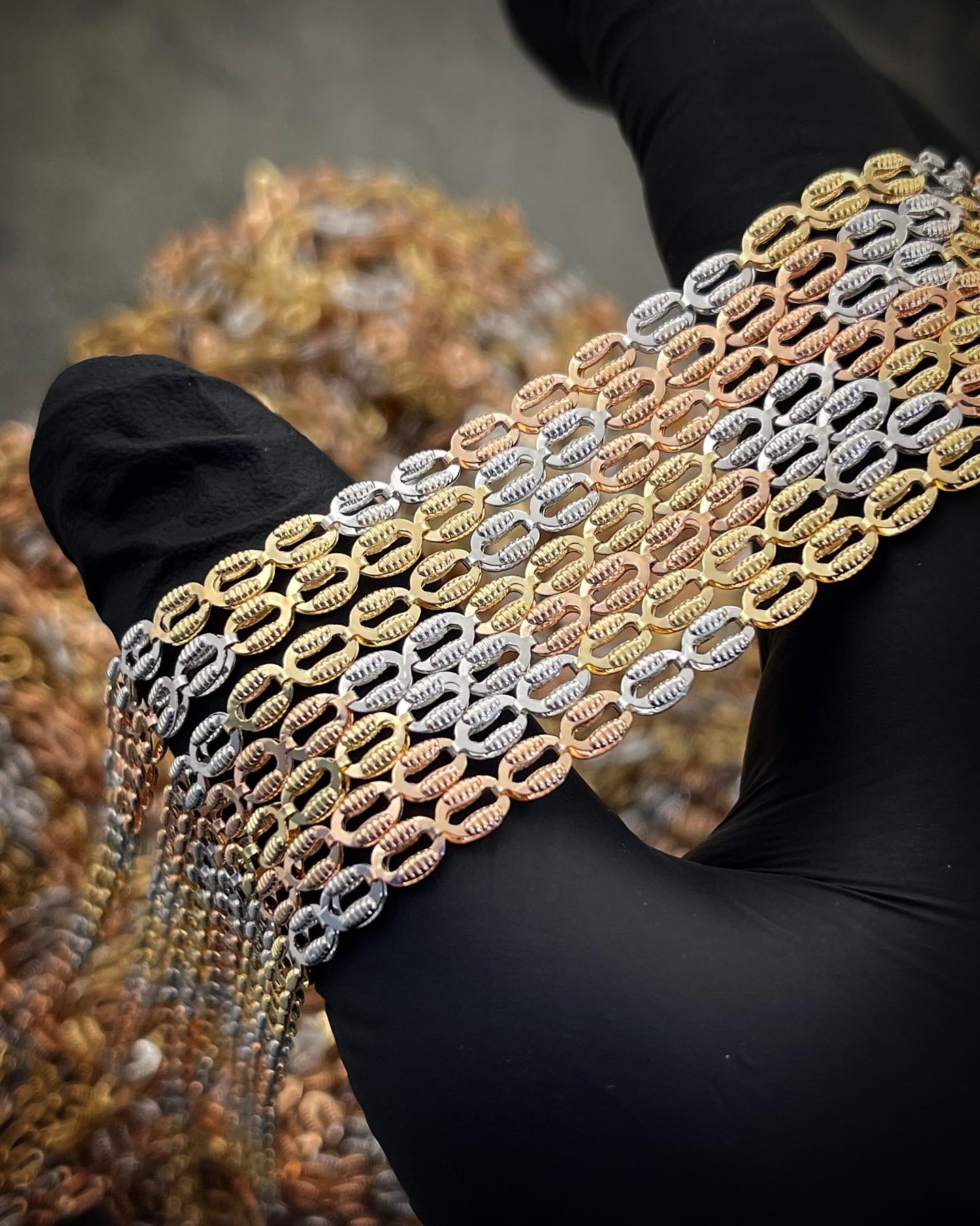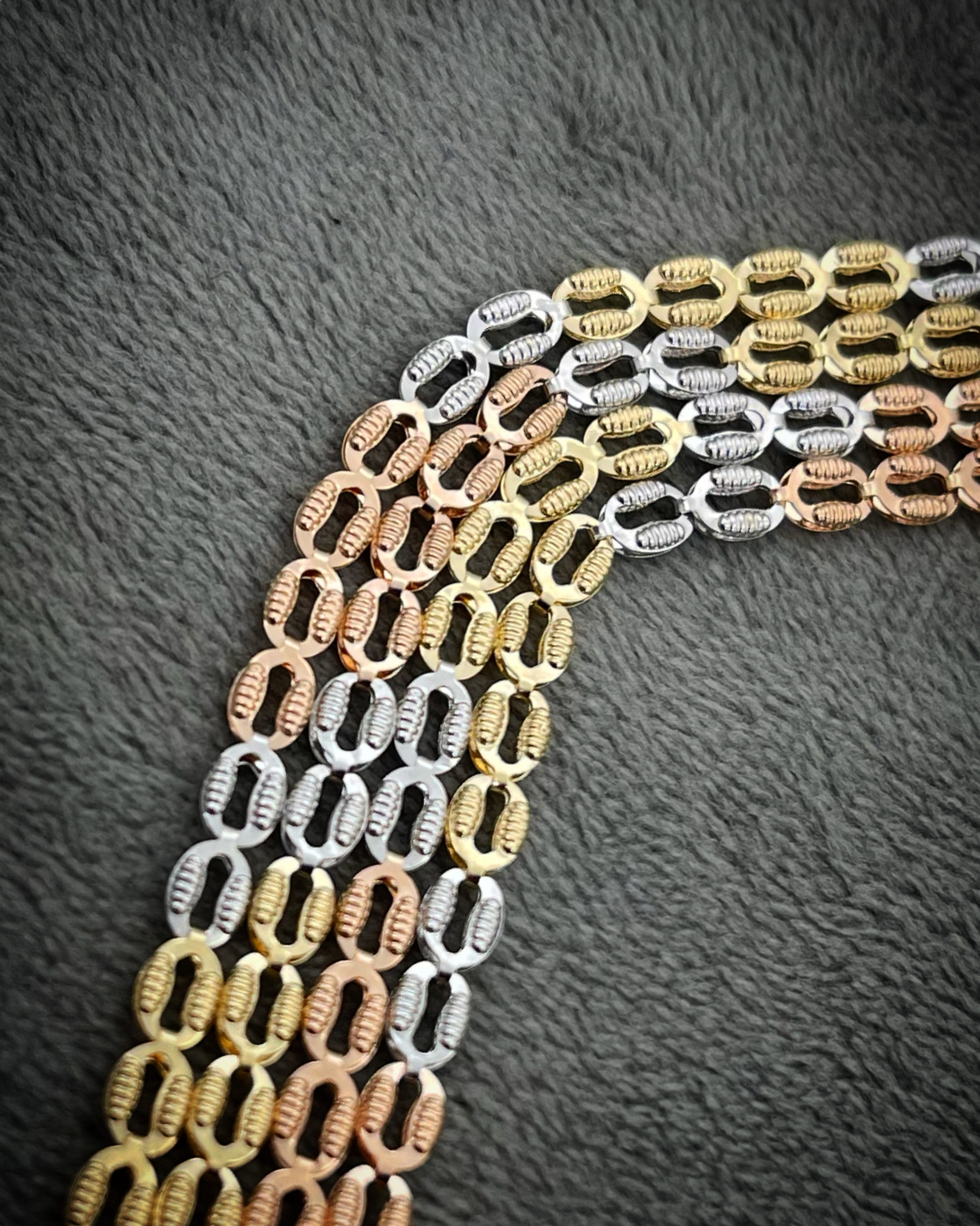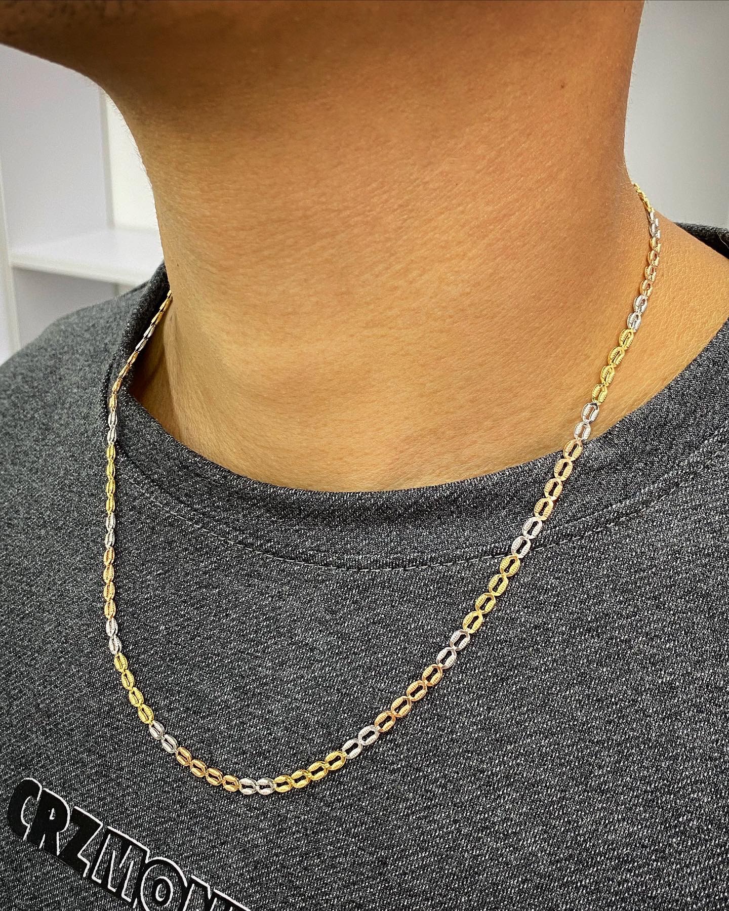 45 cm Cadena Rustica Oro Amarillo Y Blanco 18K Italy 96.0 gr 8mm