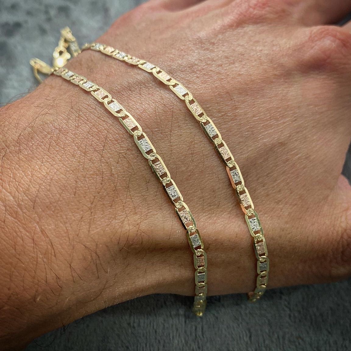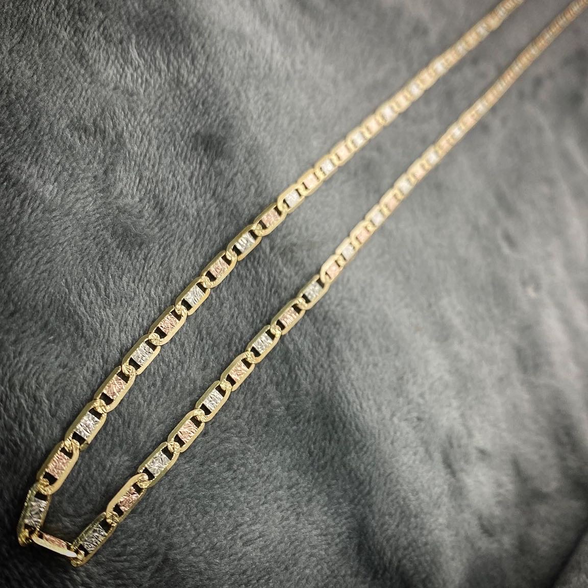 Inicio / Cadenas / Cadenas italianas / 60 cm Cadena Plana Diamantada Tres Oros 18K Italy 11.5 gr 3mm