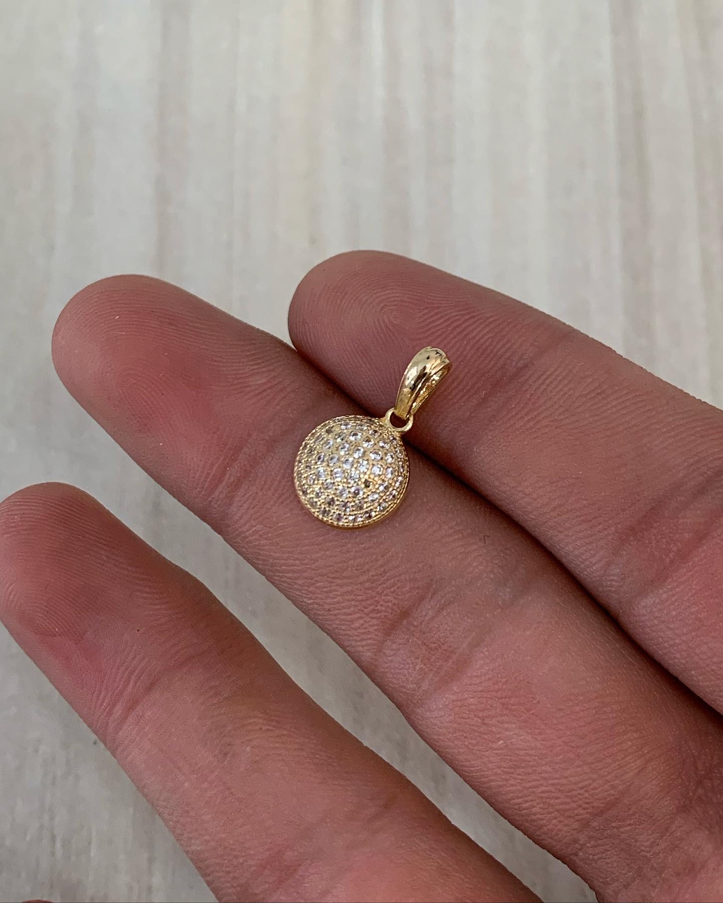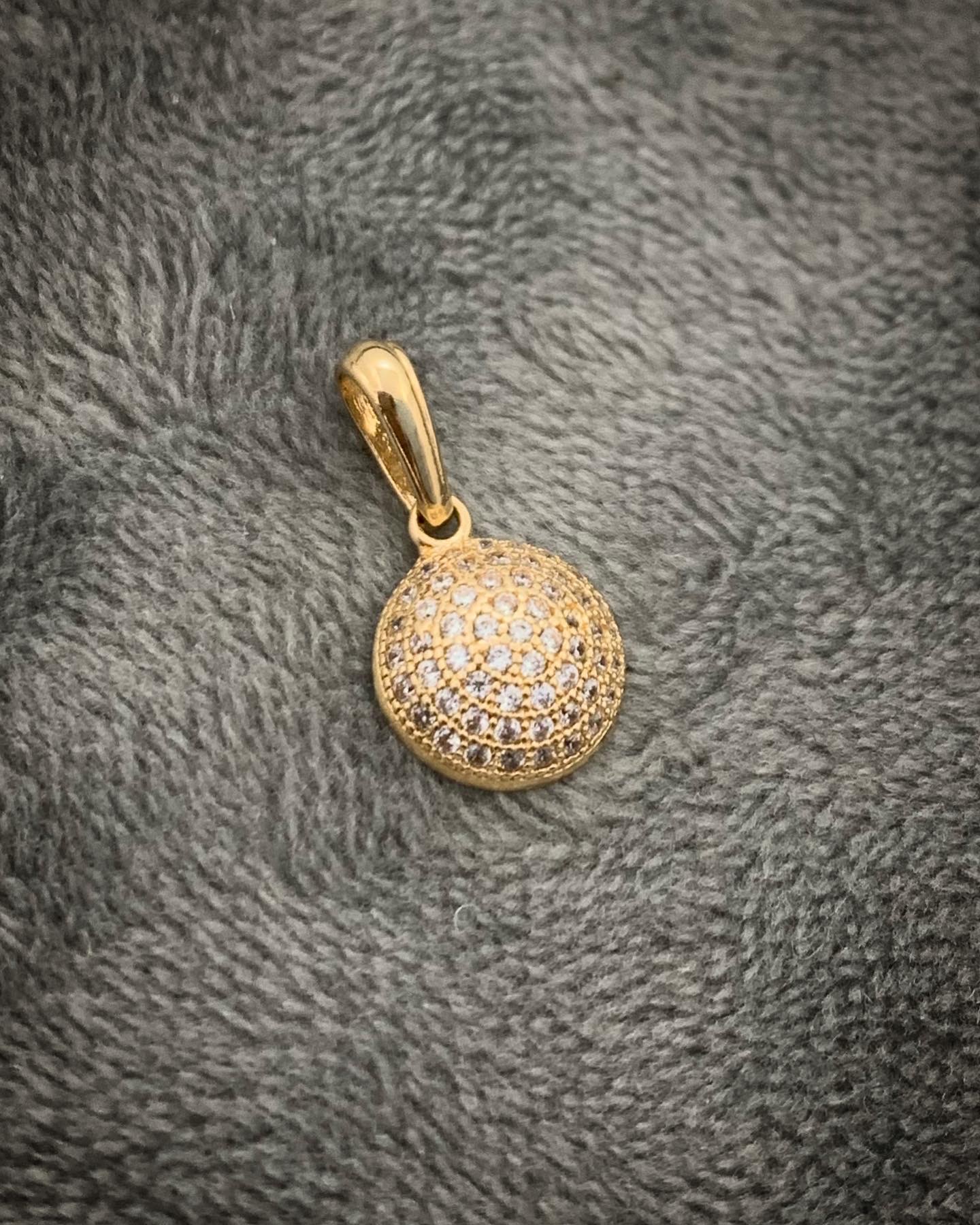 Dije Media Bola con Swarovskis blancos en Oro Amarillo 18K 1.35gr