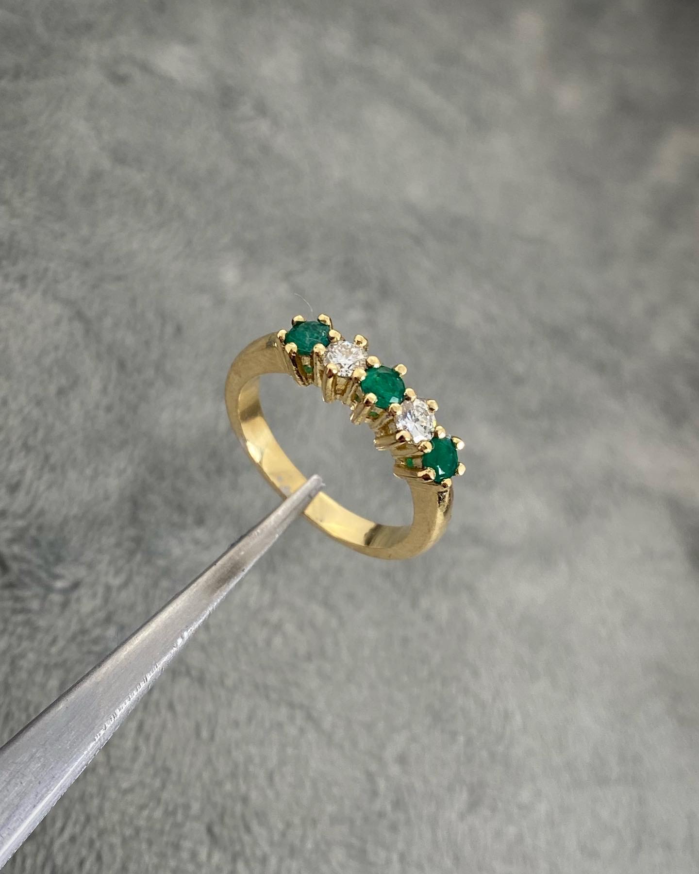 Anillo Con 25 Pts De Diamantes Y 30 Pts De Esmeraldas