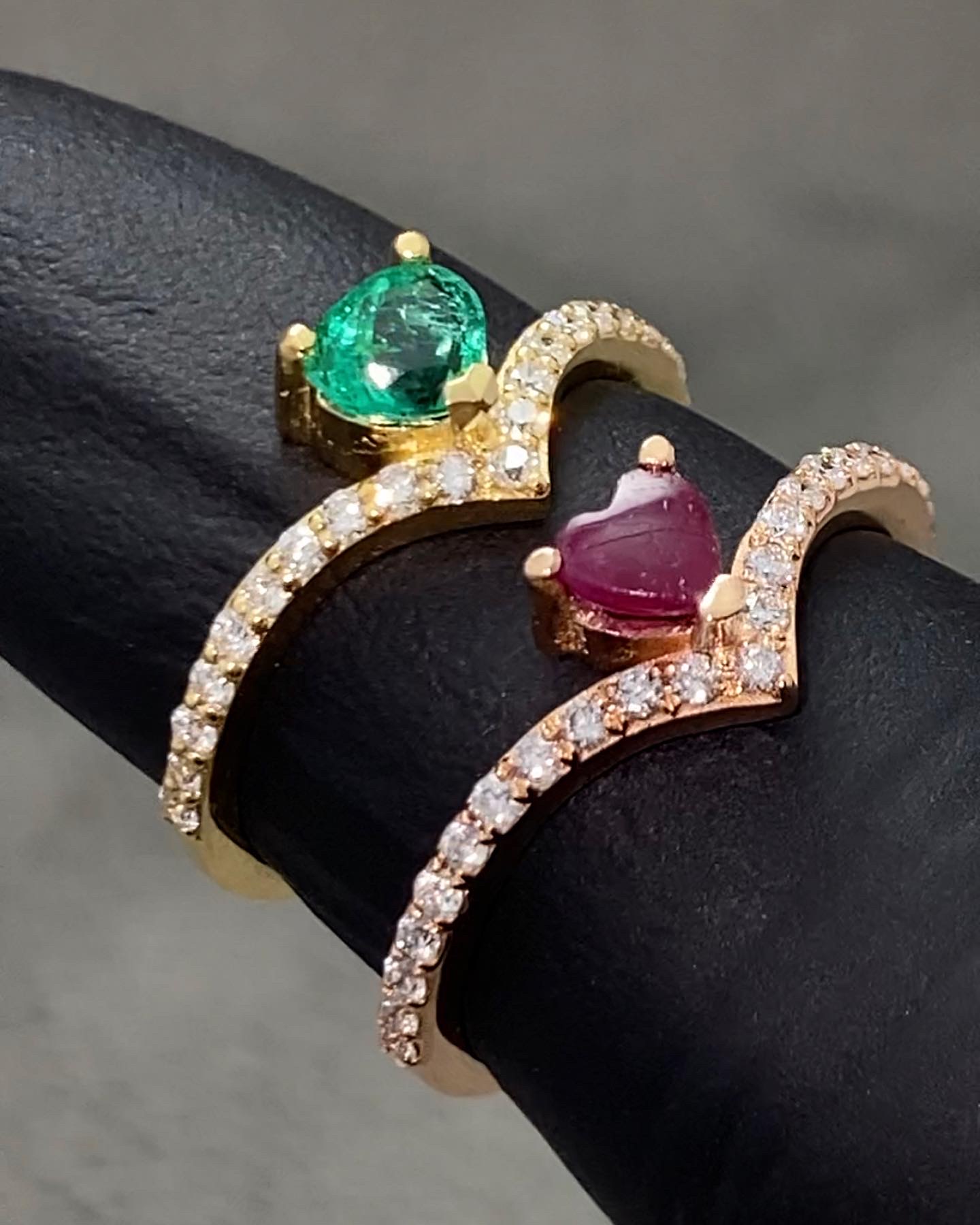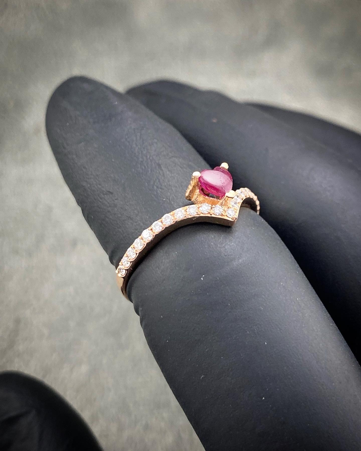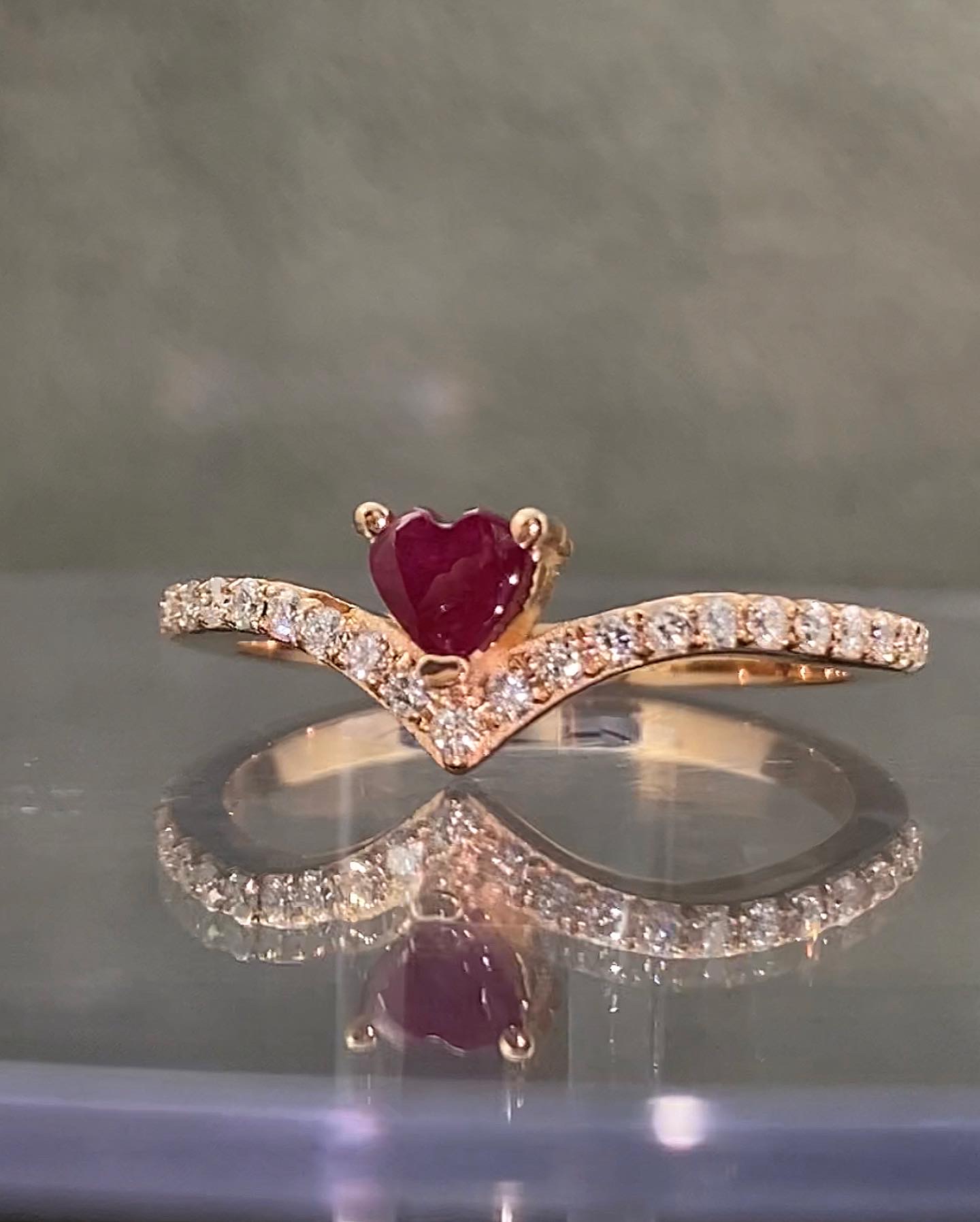 Anillo Con Corazón De Rubies 30pts , 32pts De Diamantes