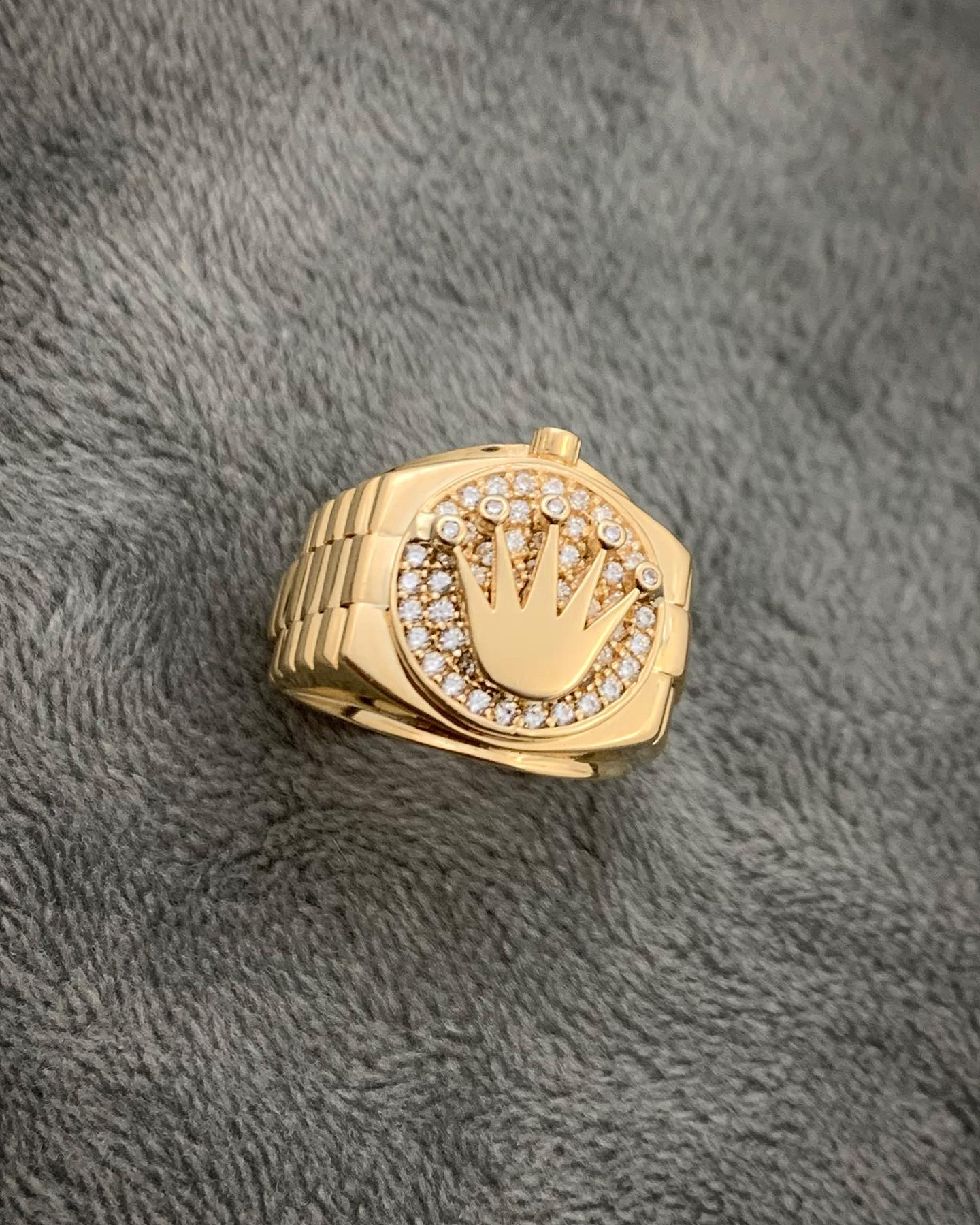 Hermoso Anillo de Corona con Swarovskis Blancos en Oro Amarillo 18K 5.7gr