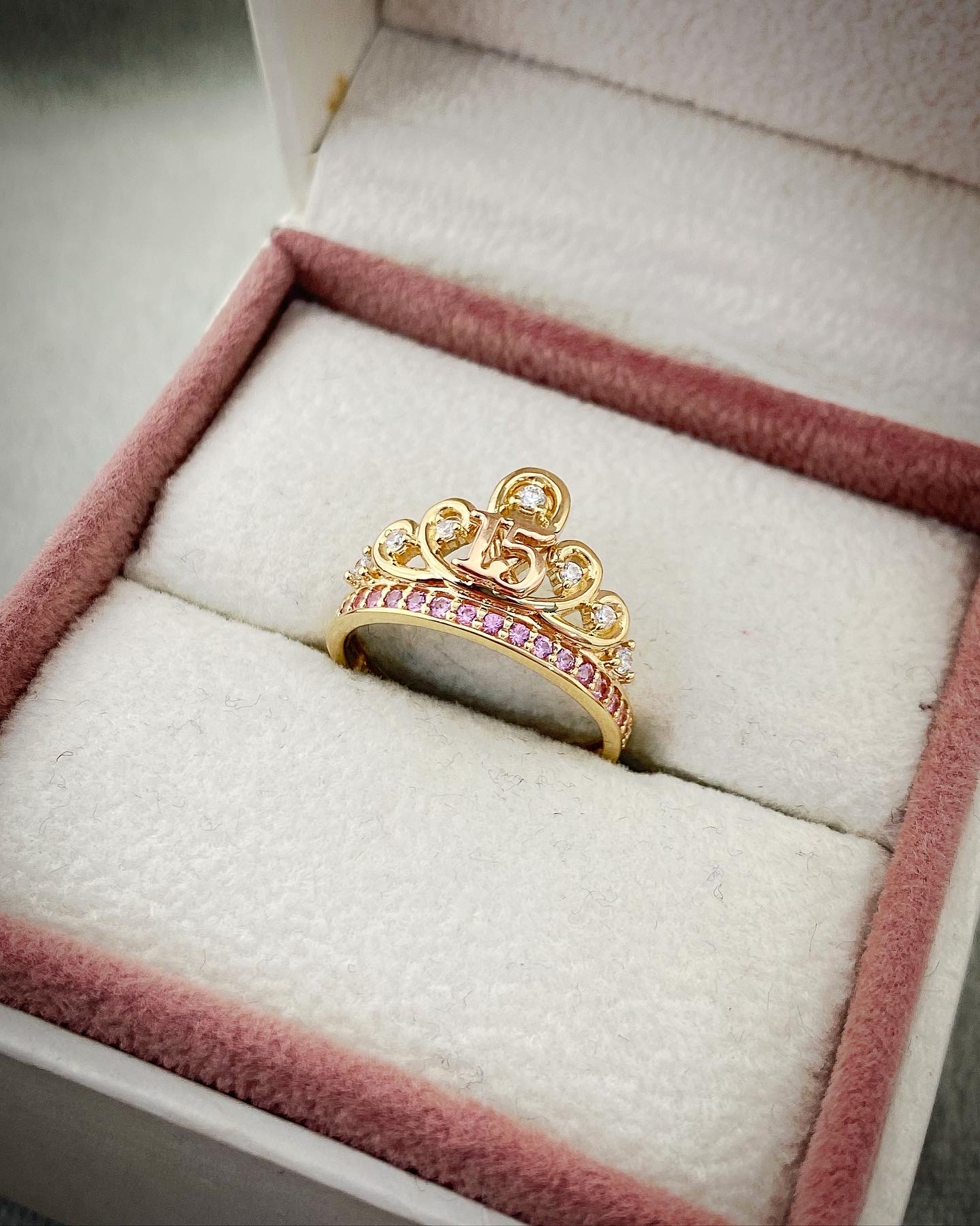 Anillo De Corona Con Swarovski Blanco y Rosado