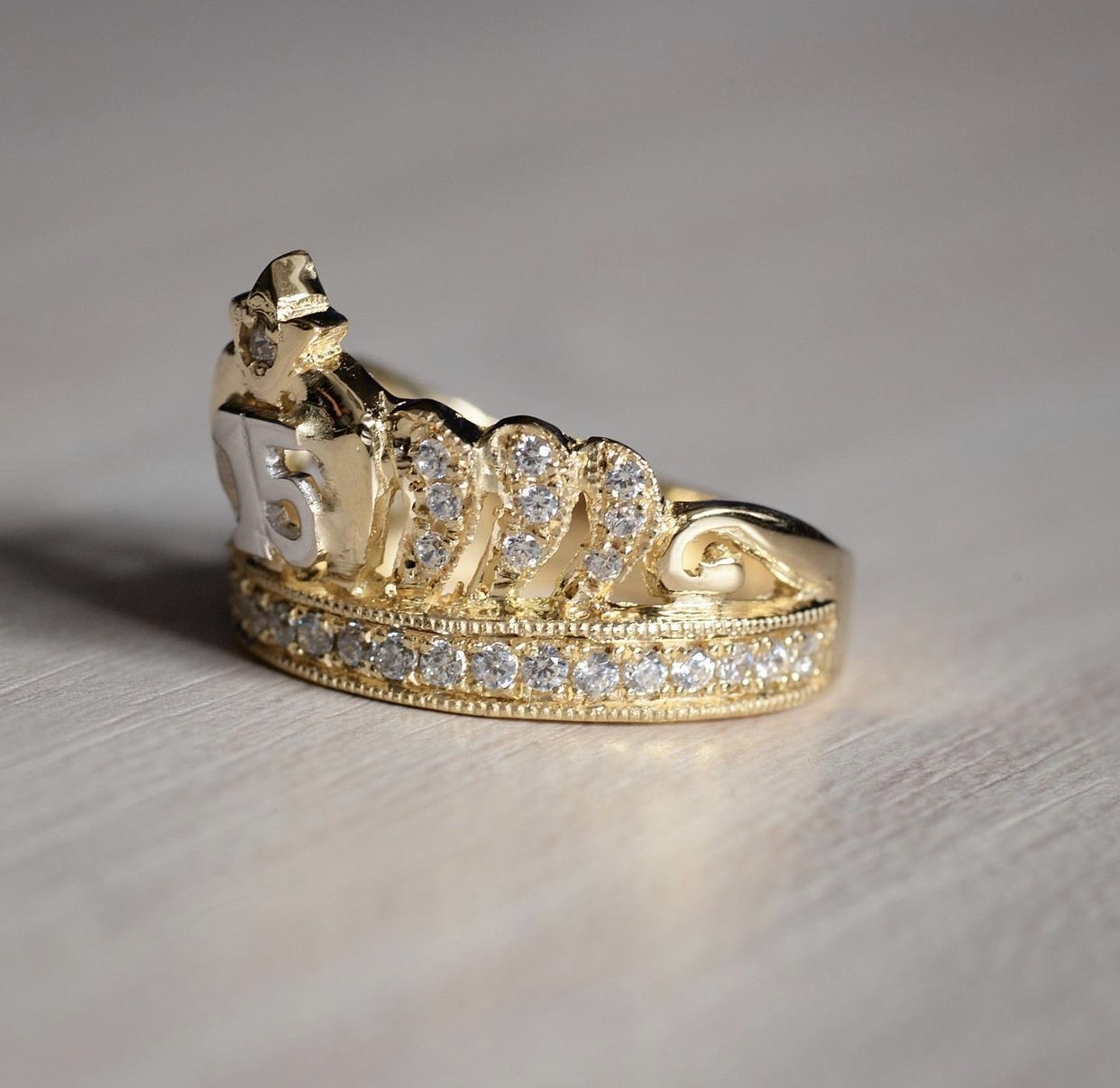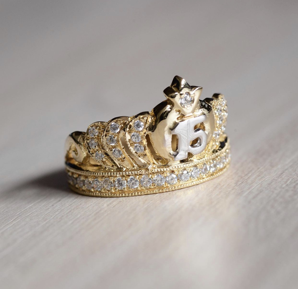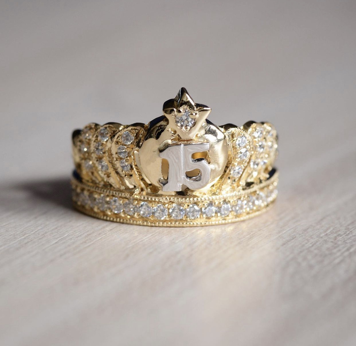 Anillo Corona Oro Blanco 18K 3.35 gr Talla #6 3/4