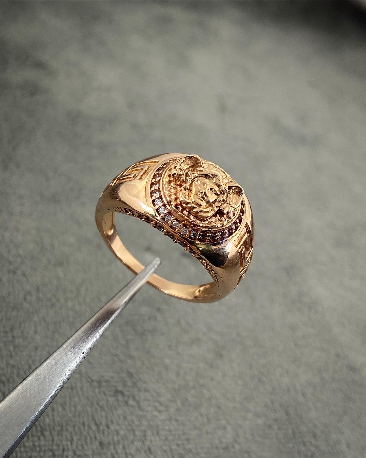 Inicio / Anillos / Anillos Hombre / Anillo De Medusa Con Swarovski Blanco Oro Rosa 18k 12.2gr Talla # 8 1/4