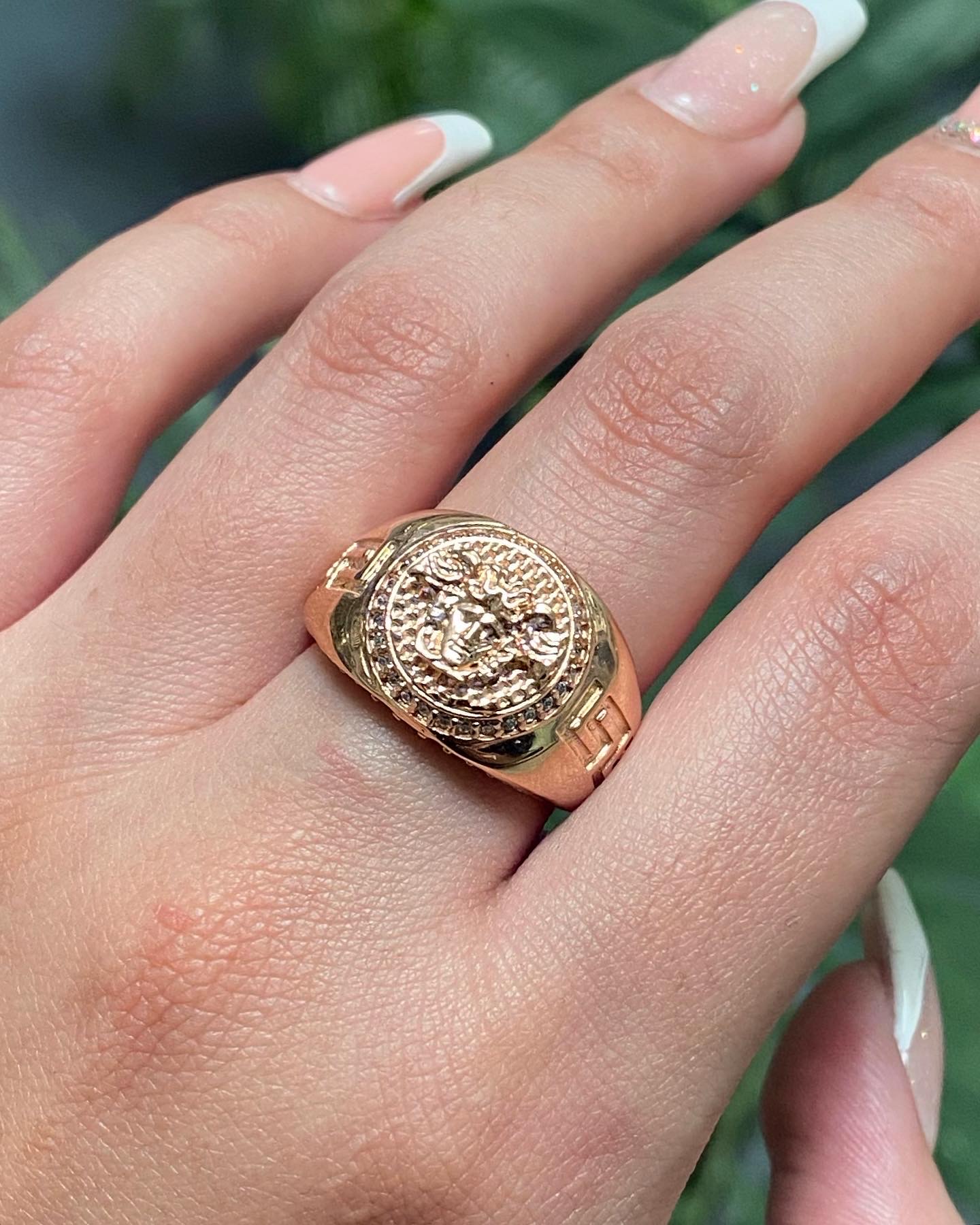 Anillo De Medusa Con Swarovski Oro Amarillo 18k Italy 9.6gr Talla # 10 3/4