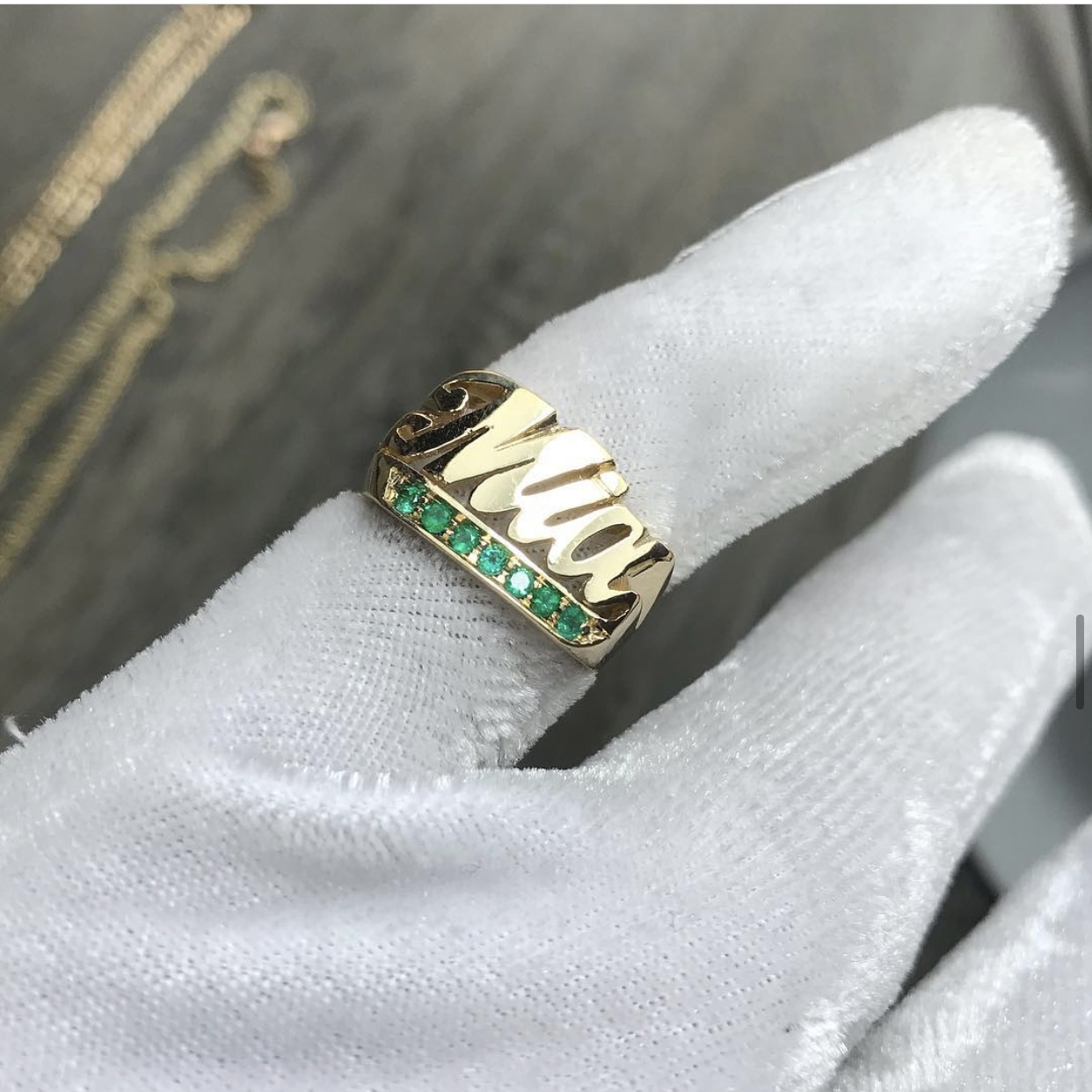 Lindo Anillo De Nombre Por Fabricación Con 14 pts De Esmeralda