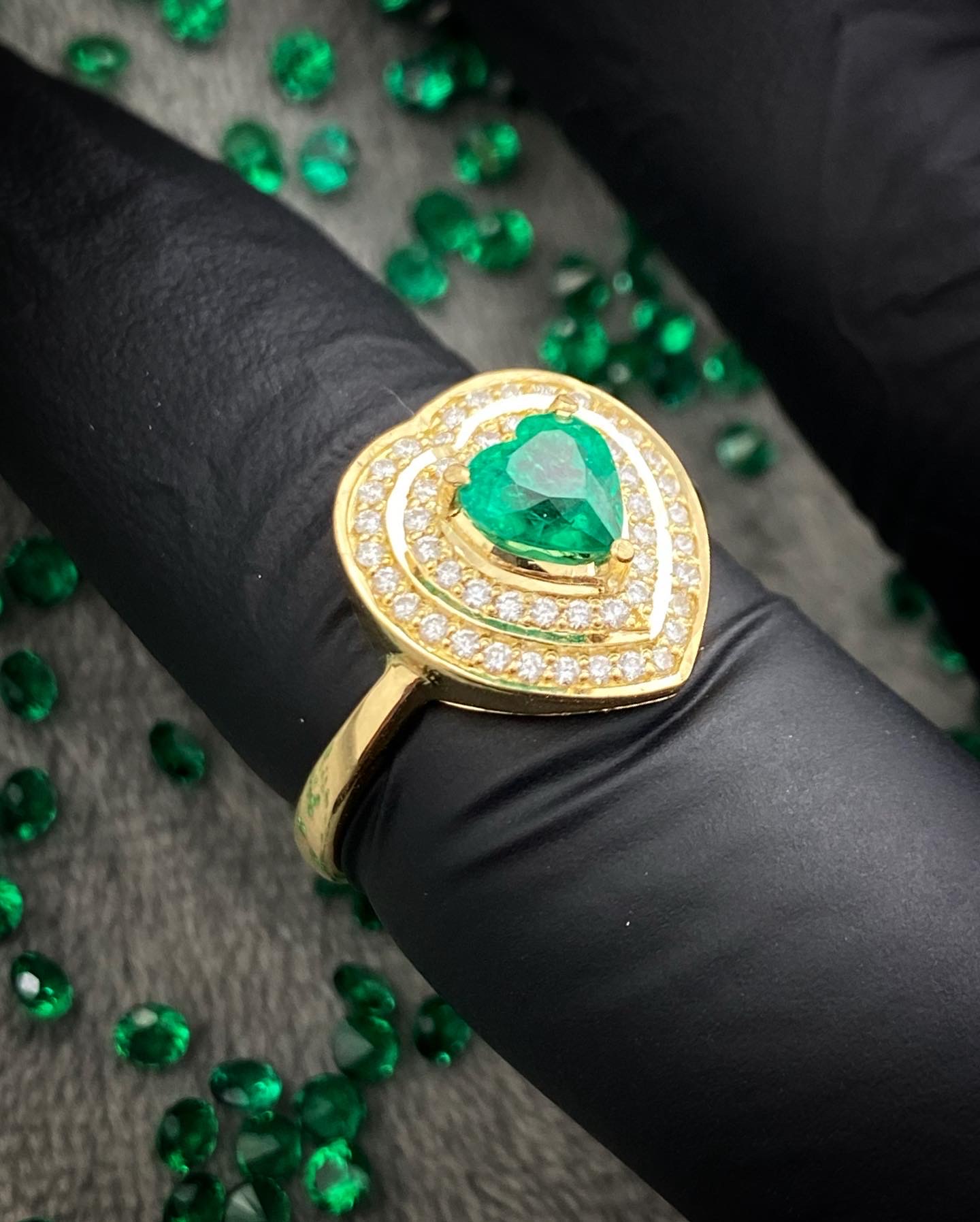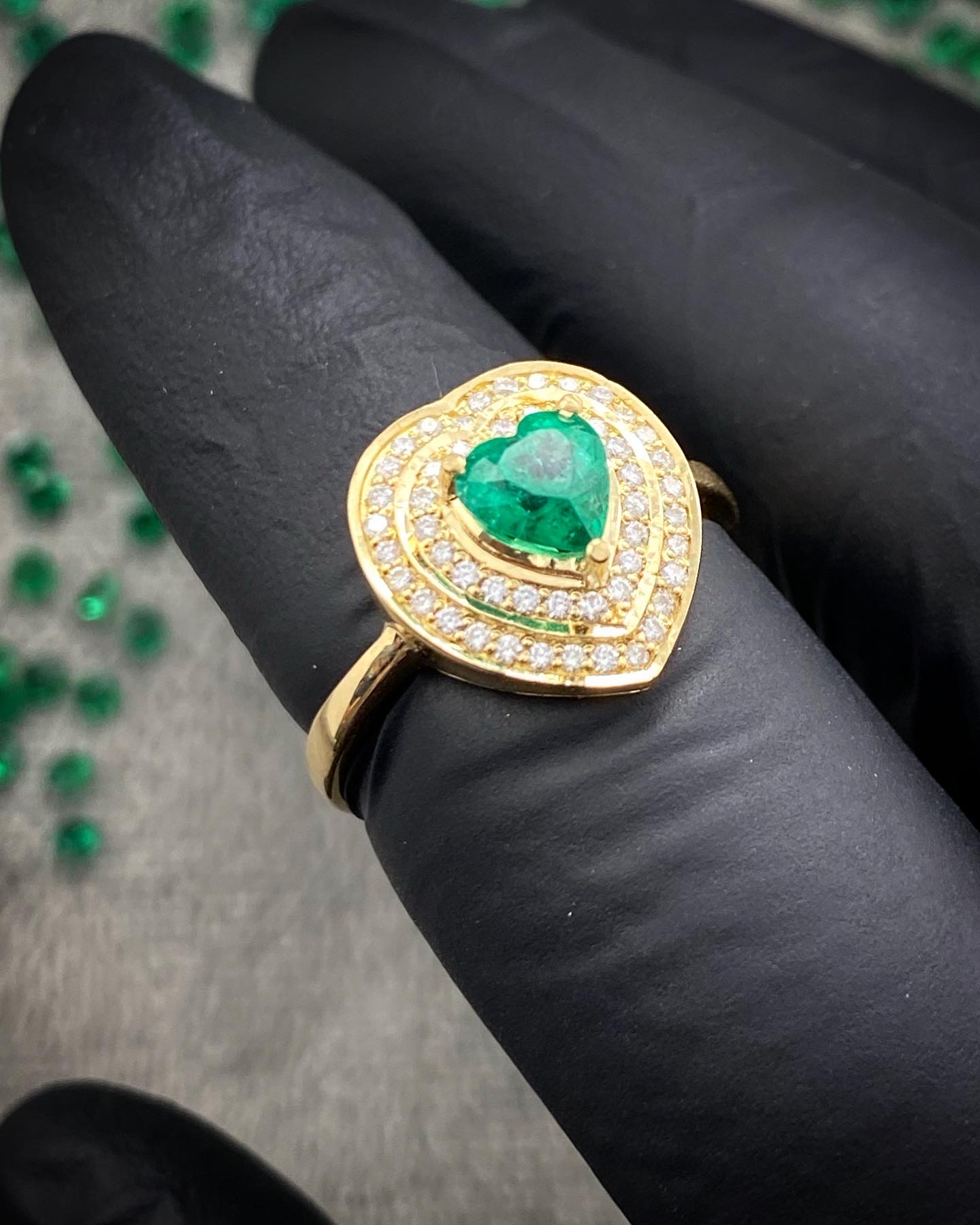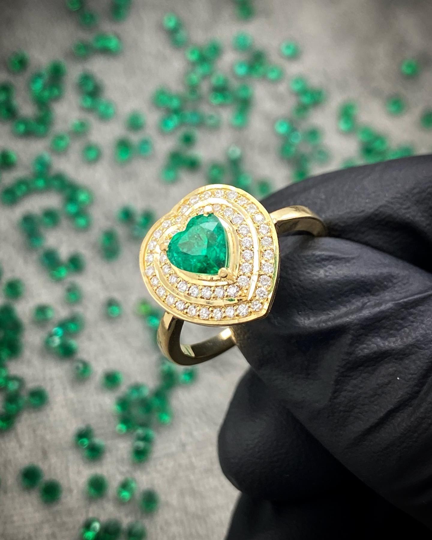 Exclusivo Anillo En Forma De Corazon Con Esmeralda De Corazon De 74 Pts Y Diamantes Laterales 24 Pts