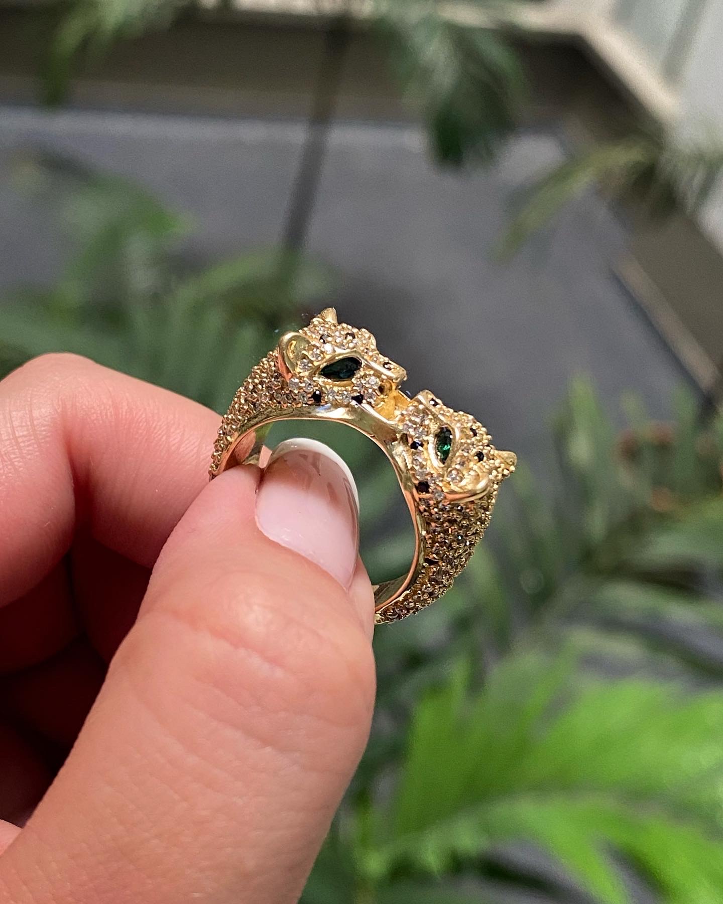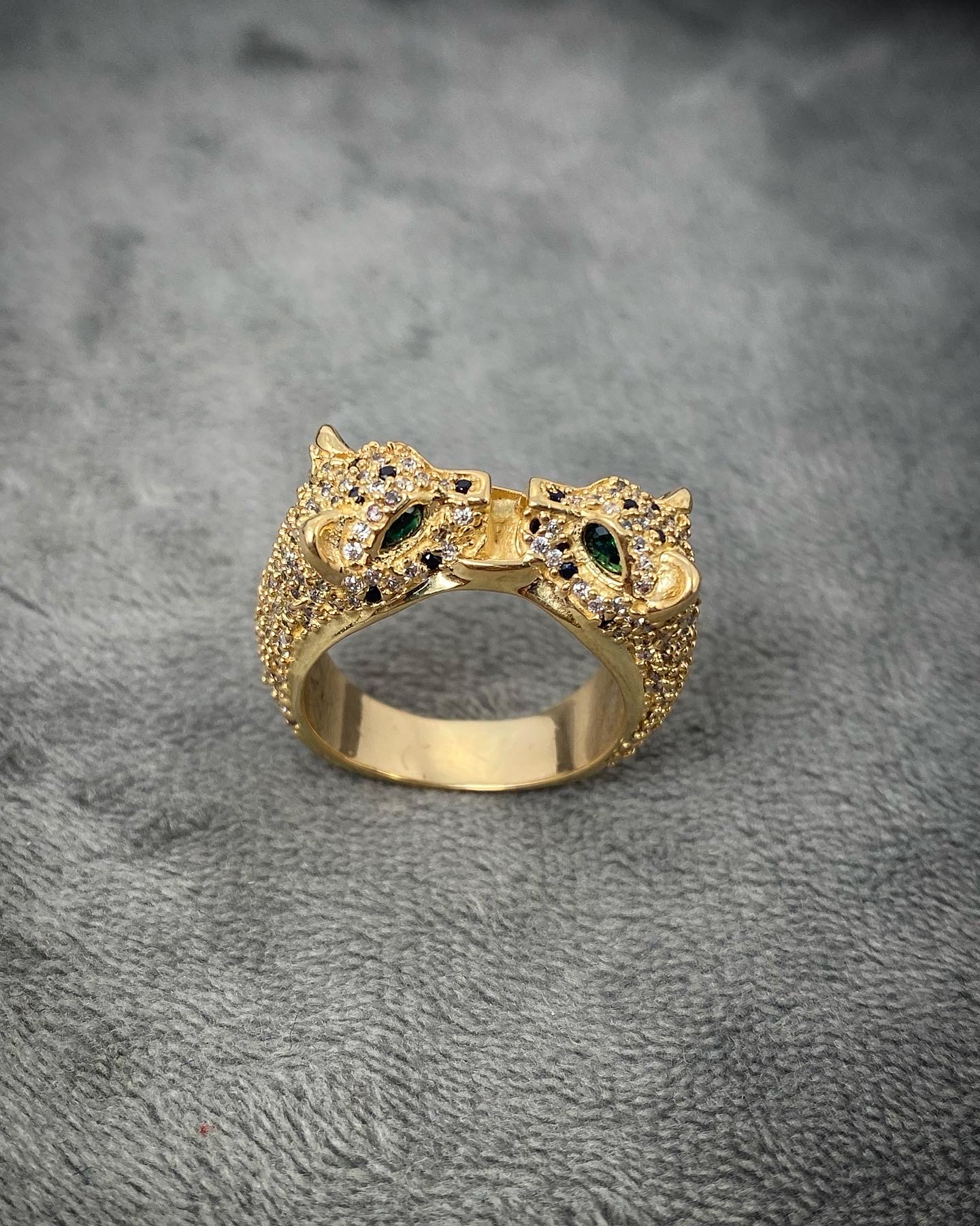 Anillo Pantera Con Swarovski Blanco y Verde