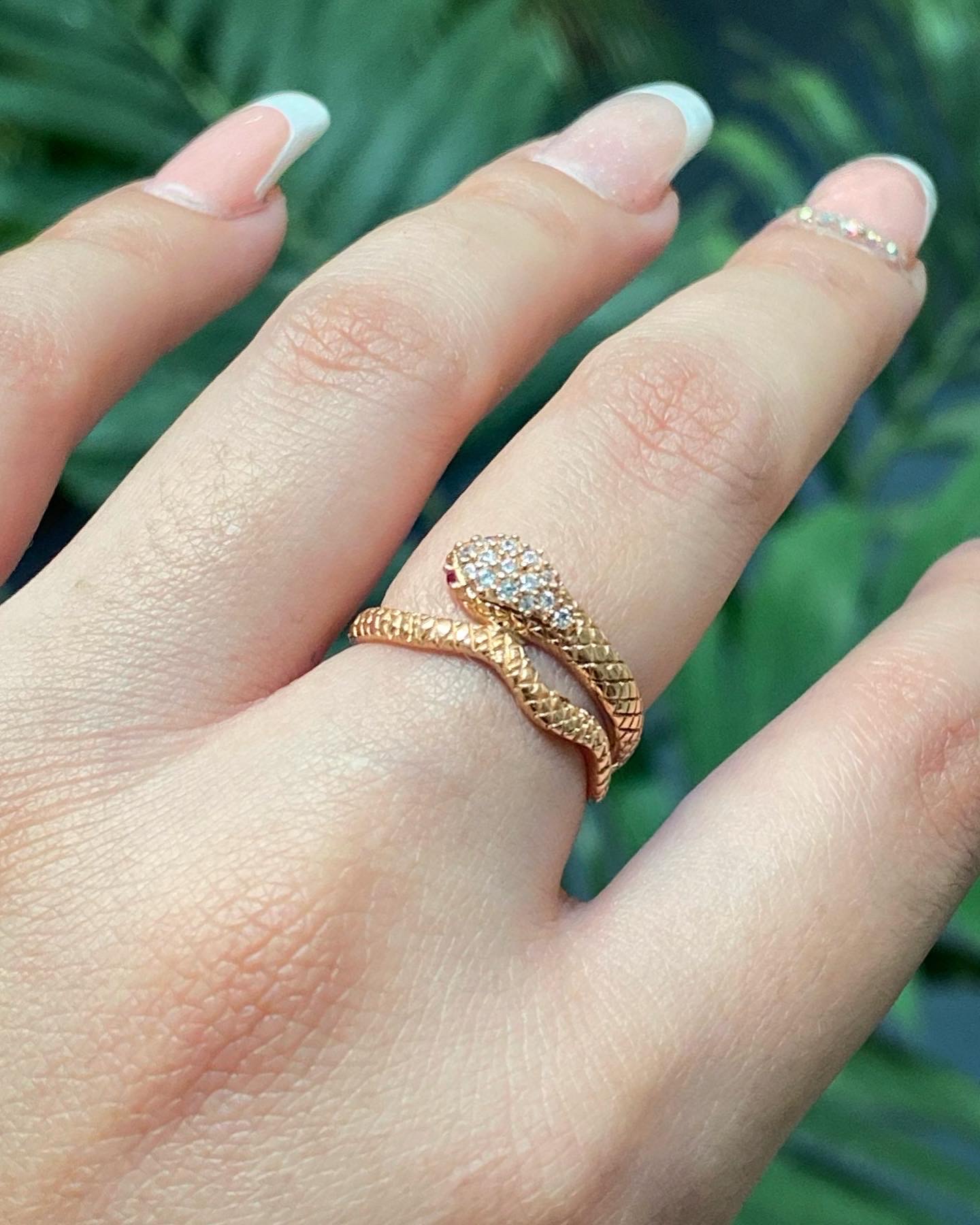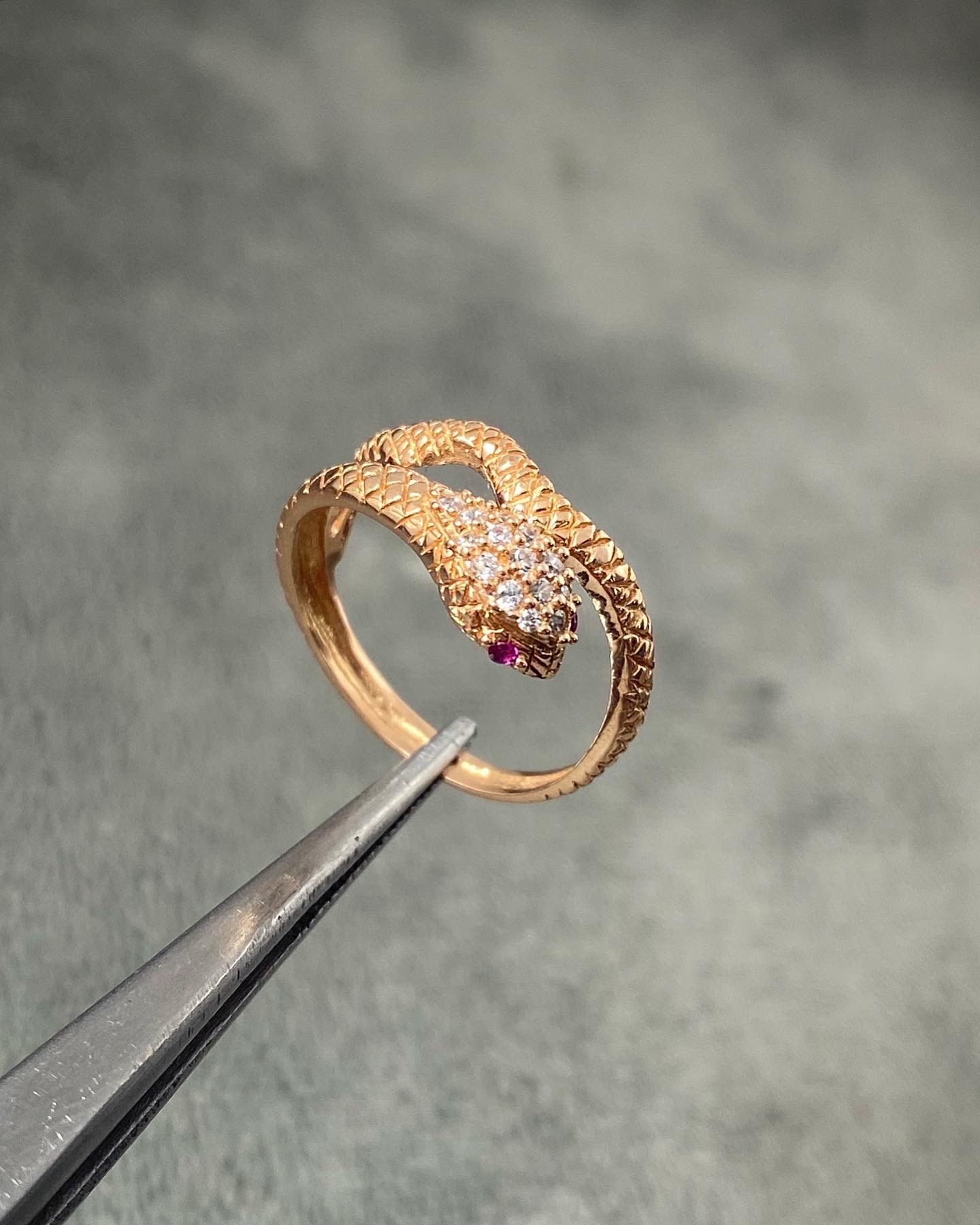 Anillo Serpiente Con Swarovski Blanco Y Fucsia