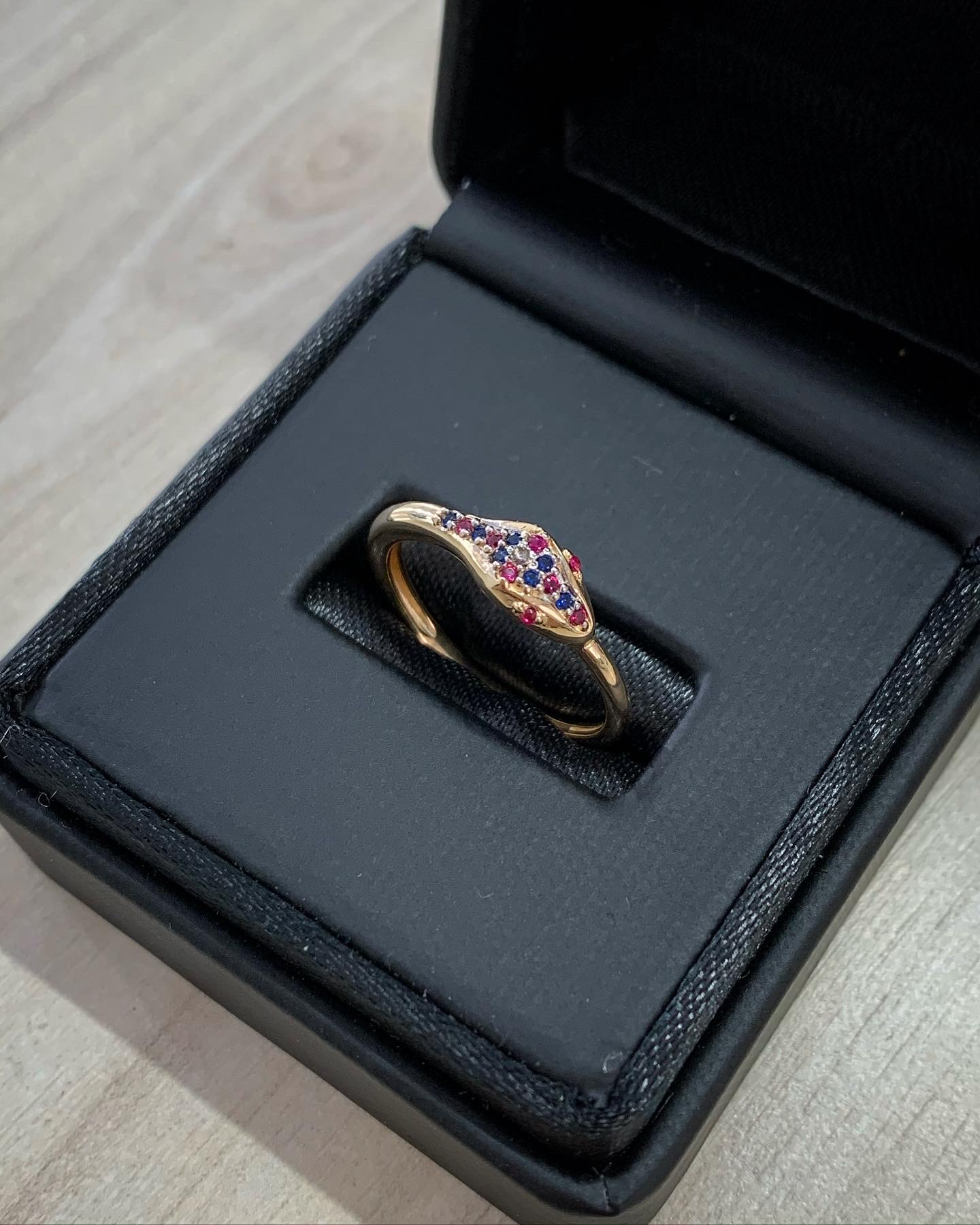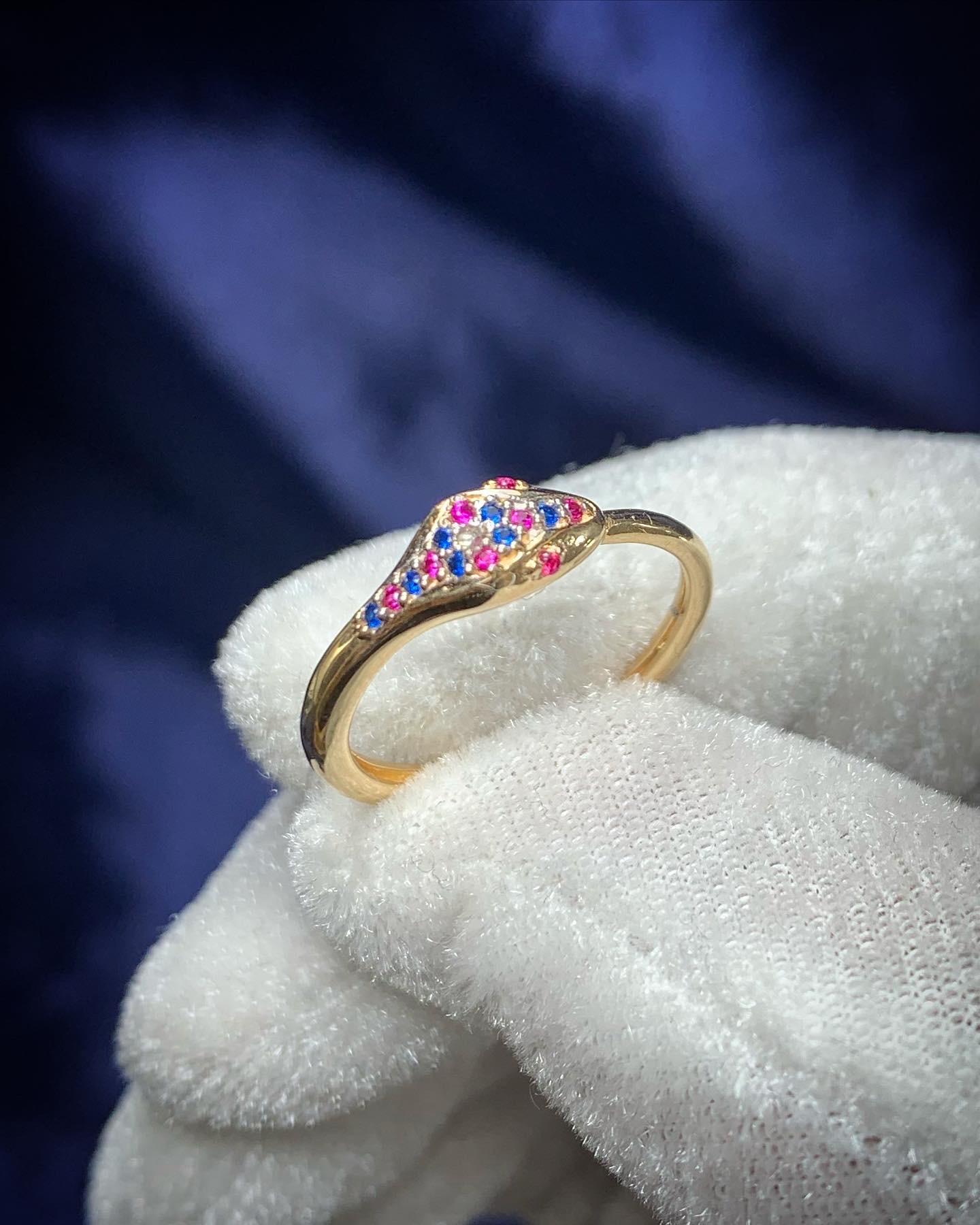 Hermoso Anillo Serpiente Con Swarovski Azules Y Rojos