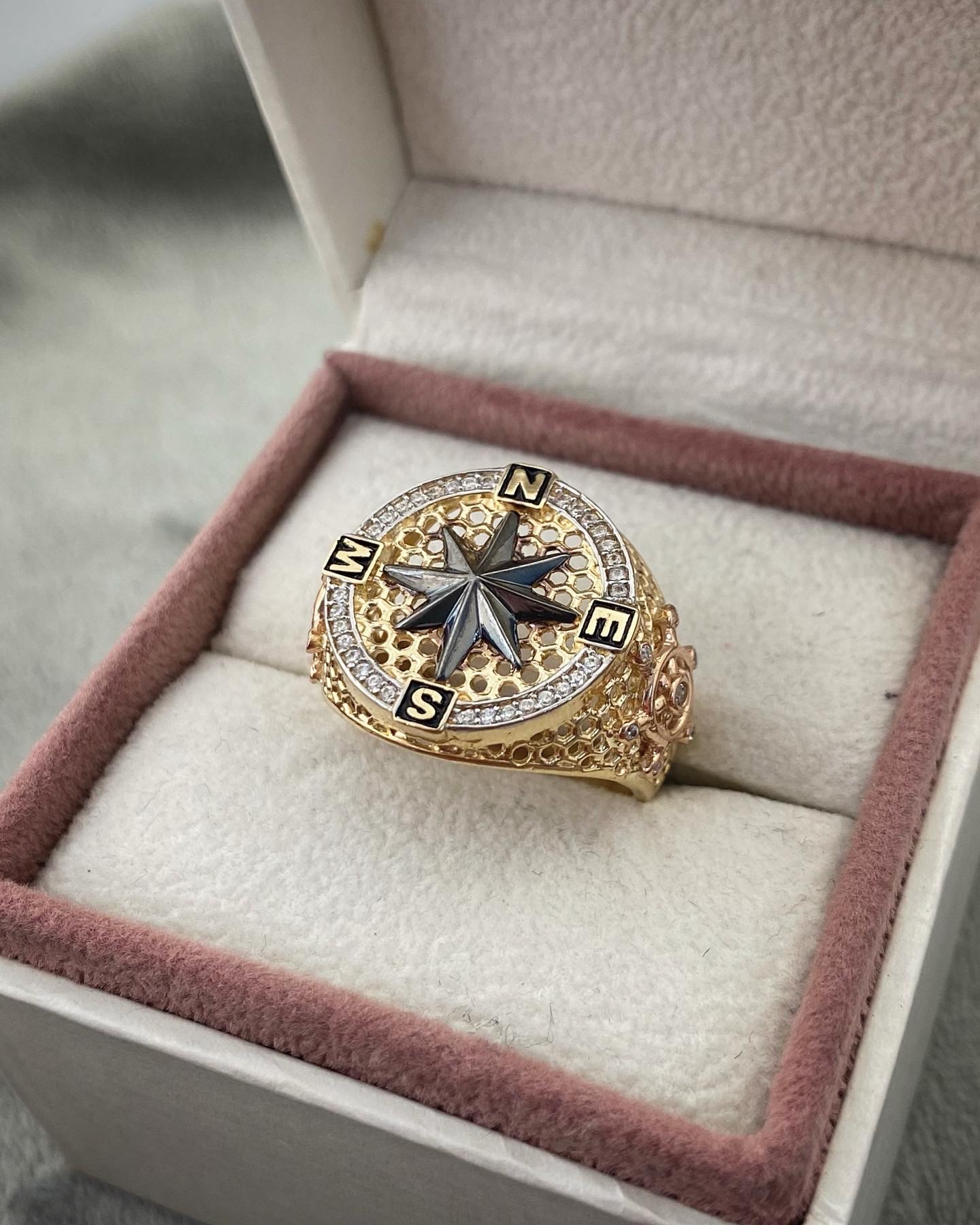 Anillo Tipo Brújula Con Swarovski Blanco