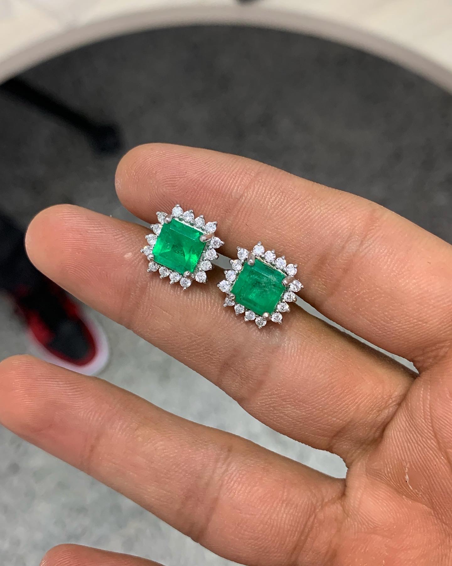 Aretes con Esmeralda Oro Blanco 18K 5.7 gr