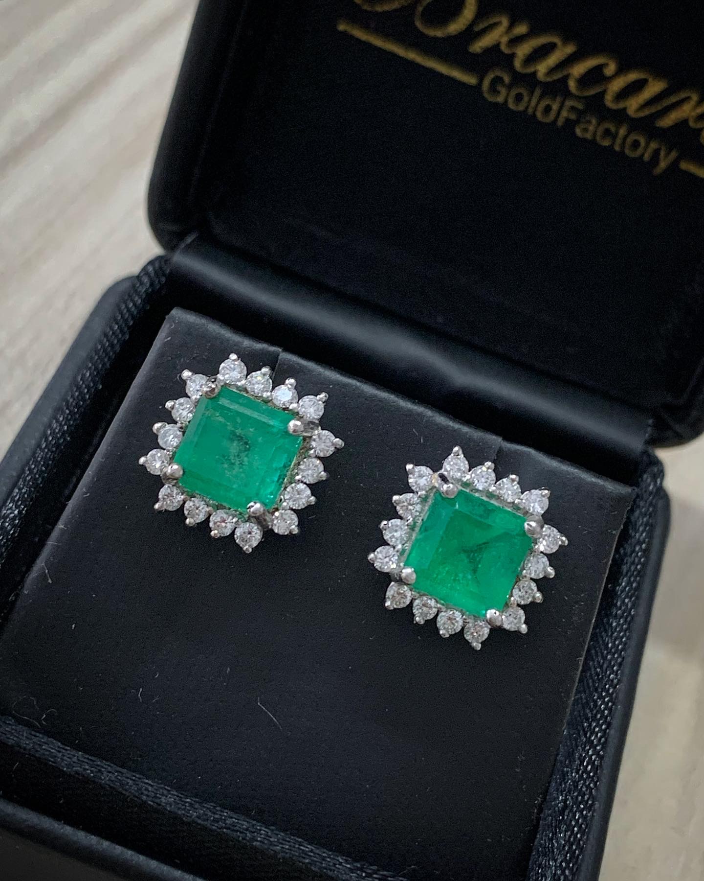 Inicio / Aretes / Aretes con Esmeralda Oro Blanco 18K 5.7 gr