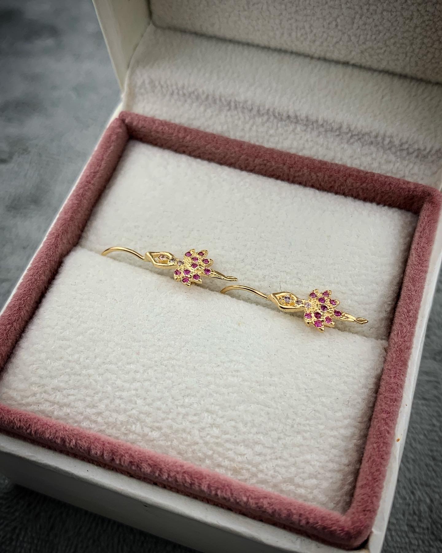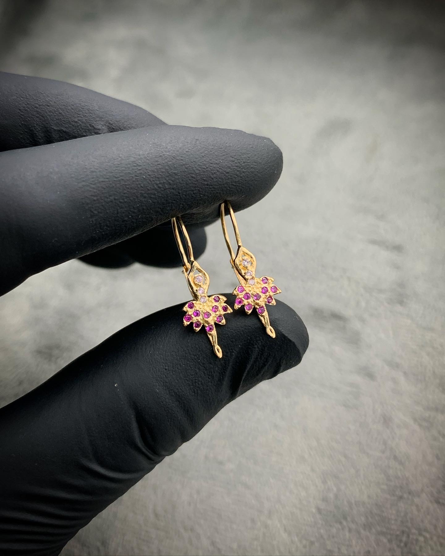Aretes De Bailarina Con Swarovski Fucsia Y Lila
