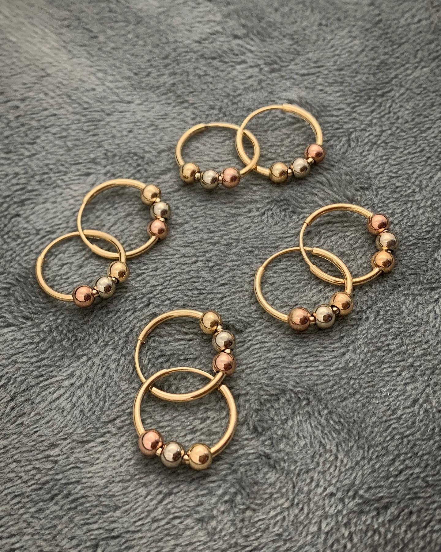 Inicio / Aretes / Candongas / Candongas Con Bolas 3mm Tres Oros 18k 1.1gr