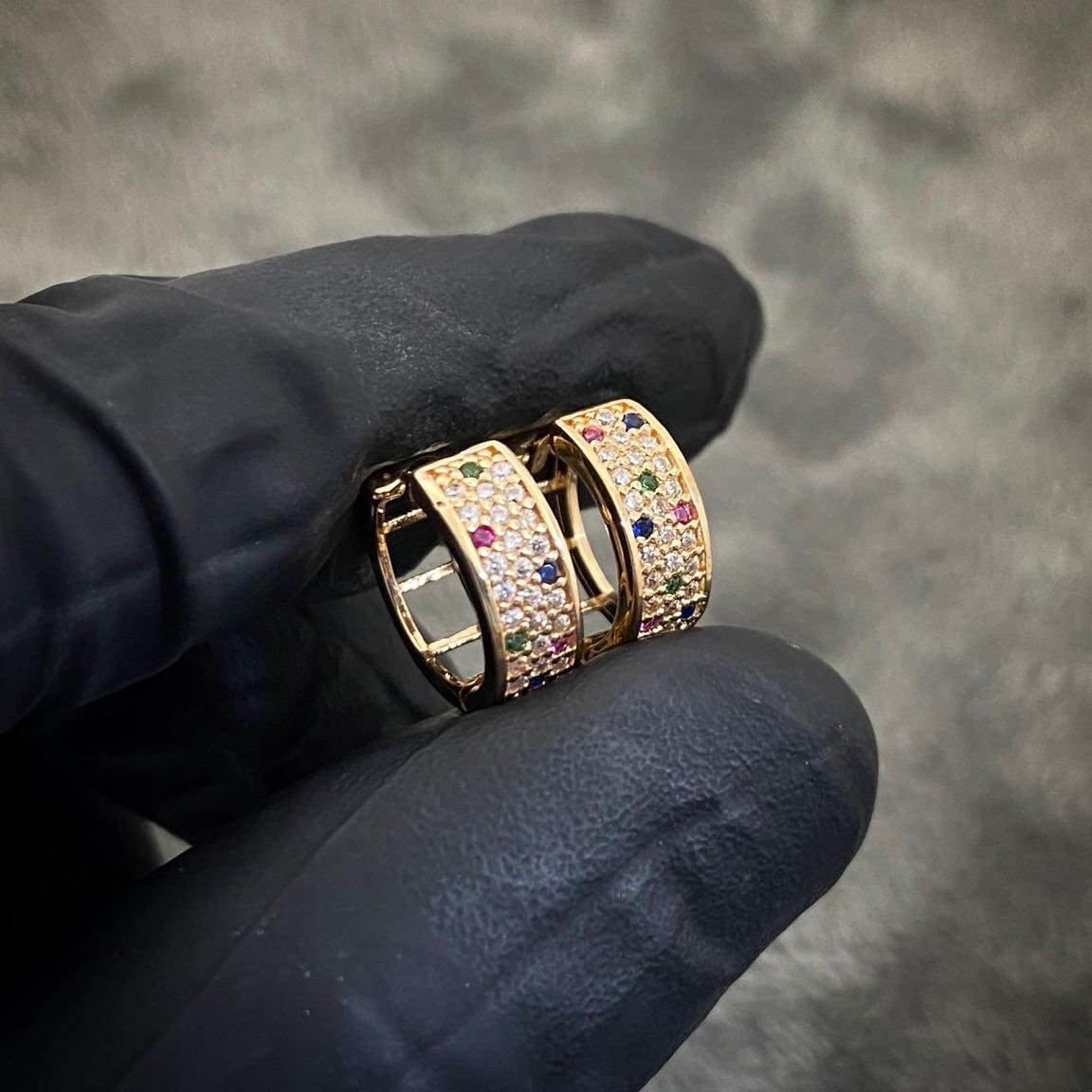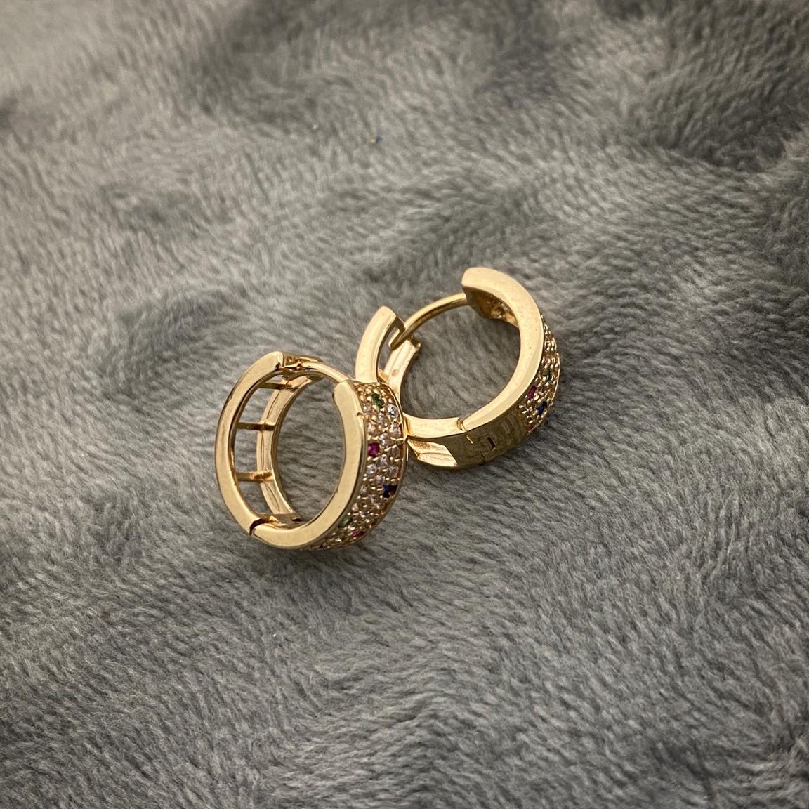 Candongas Redonda Con Swarovski Multicolor Oro Amarillo 18k 2.95gr 11.7mm