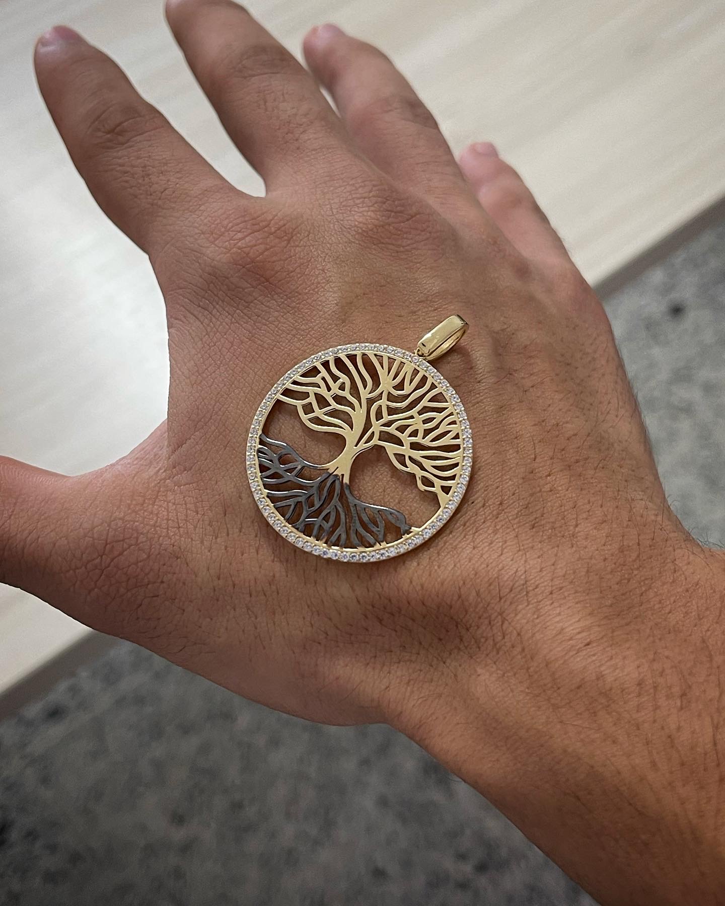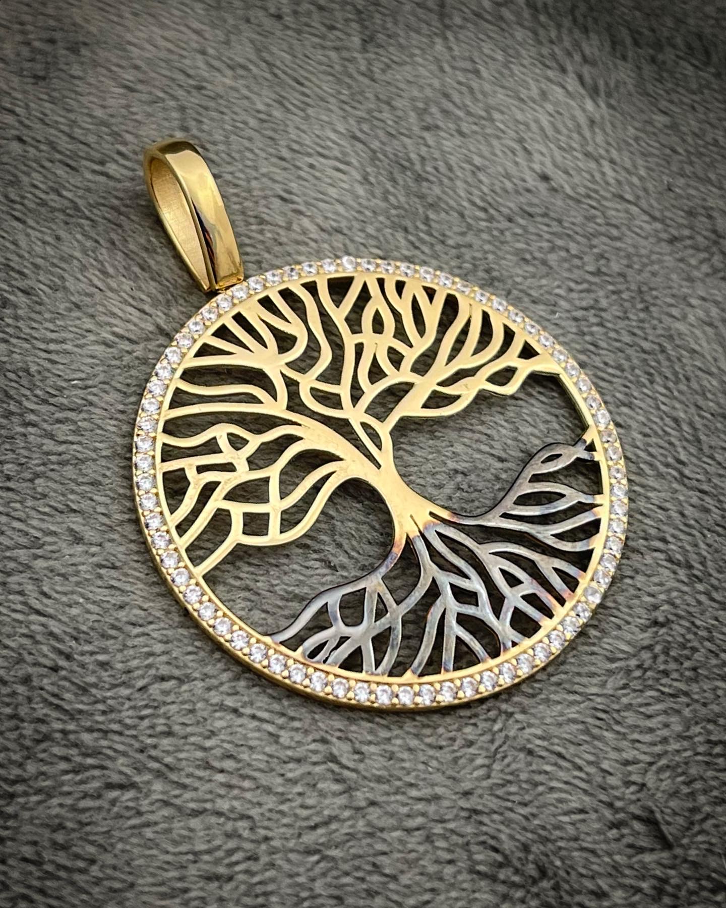 Dije Arbol De La Vida Con Swarovski Blanco Y Rodio Negro
