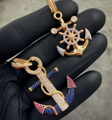Dije De Ancla Con Timon Y Swarovski Dos Oros 18K 6.2 gr 4.5 cm