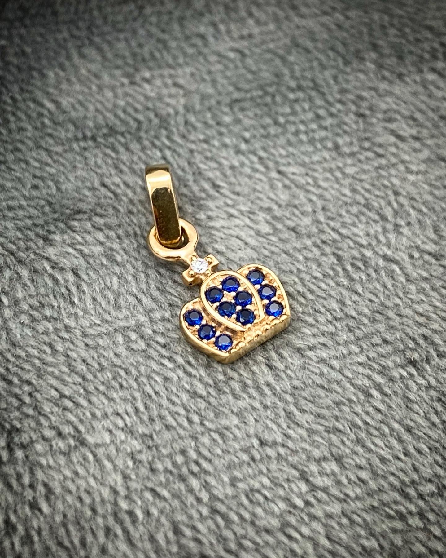 Dije De Corona Con Swarovski Azul Oro Amarillo 18k 0.9gr 1.5cm