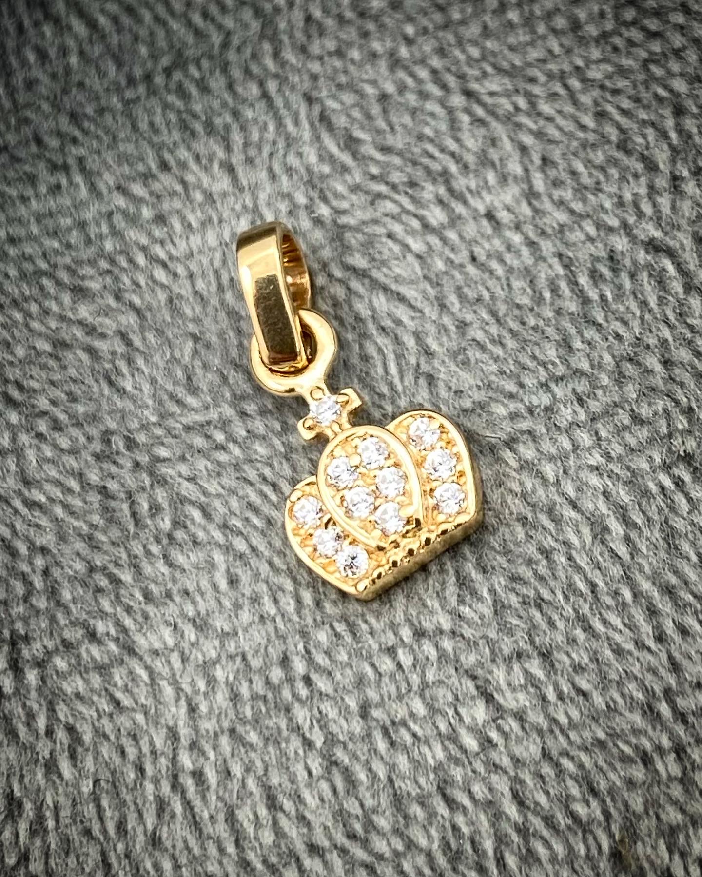 Dije De Corona Con Swarovski Blanco Oro Amarillo 18k 0.9gr 1.5cm