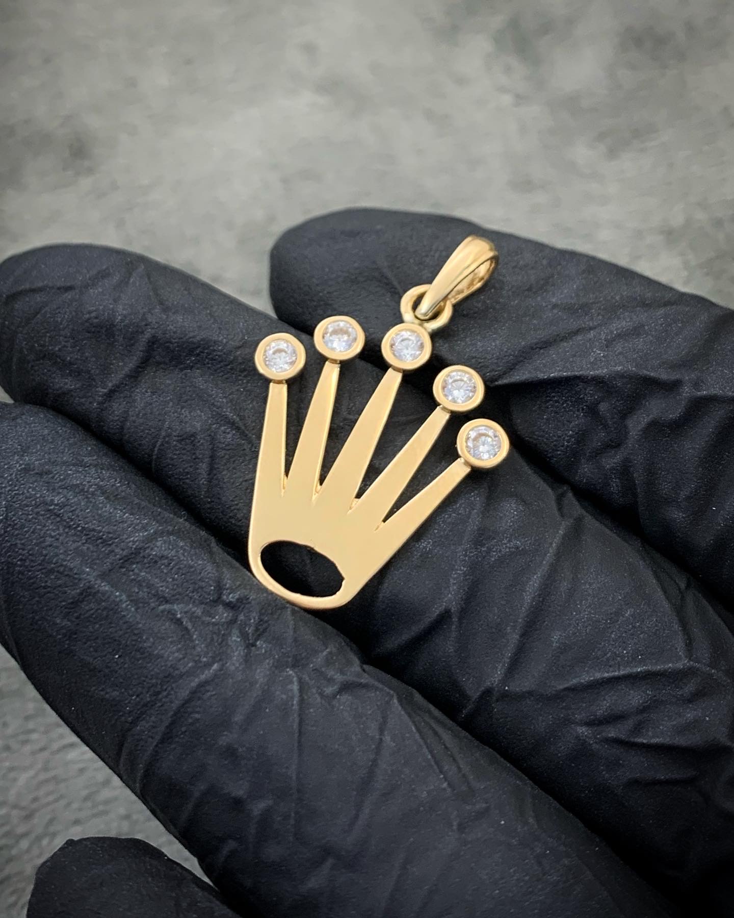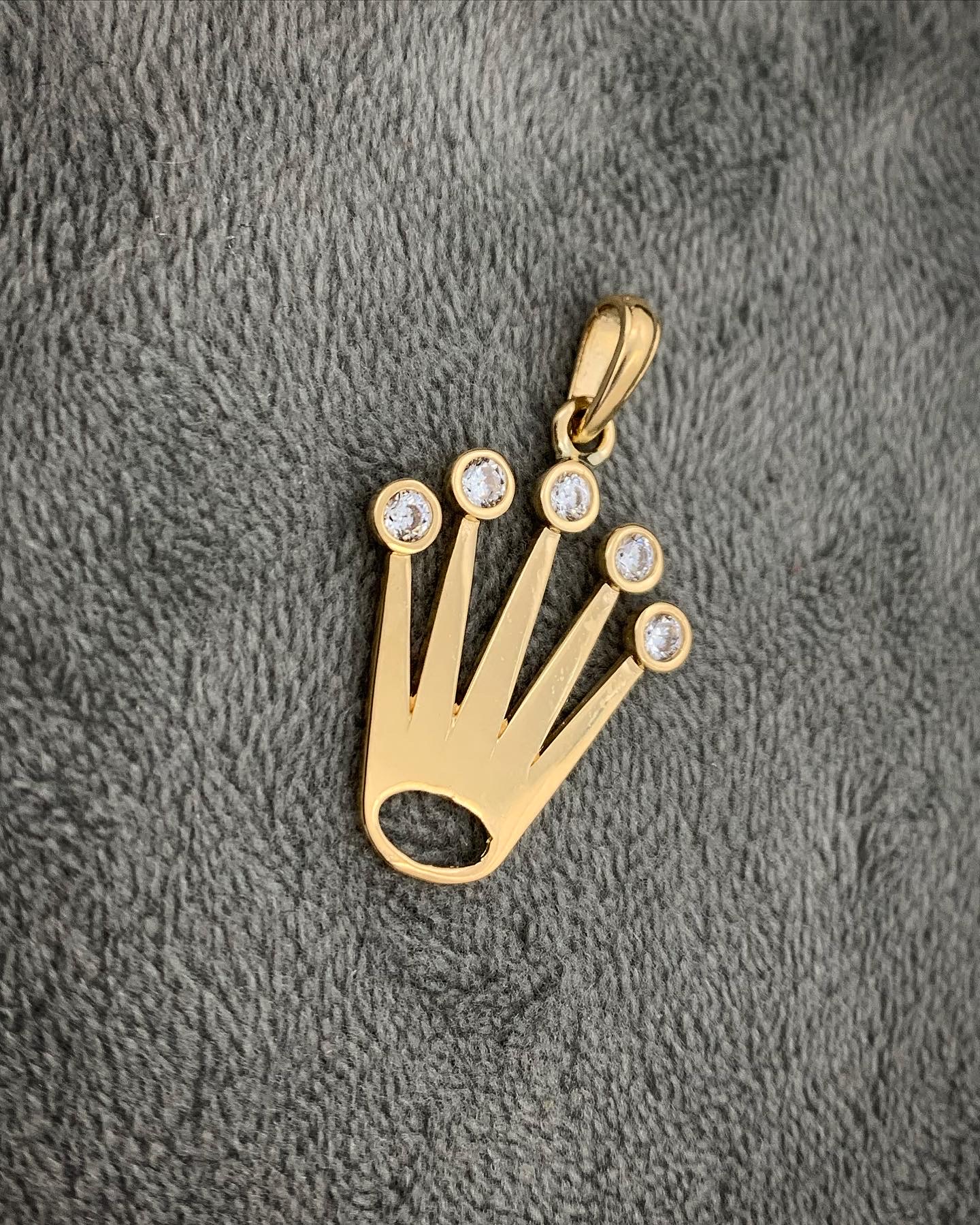 Dije De Corona Con Swarovski Blanco Oro Amarillo 18K 2.3 gr