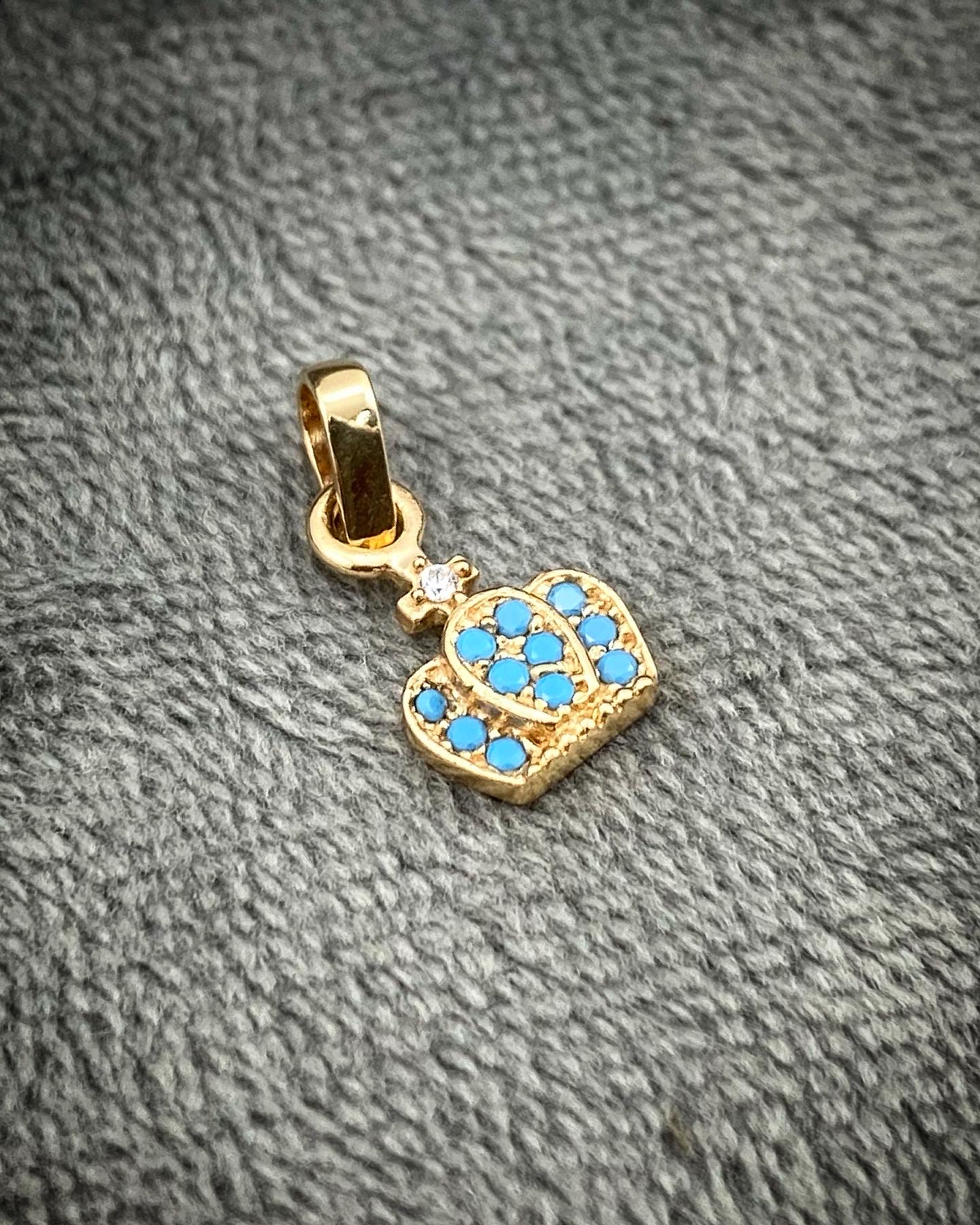 Dije De Corona Con Swarovski Celeste Y Blanco