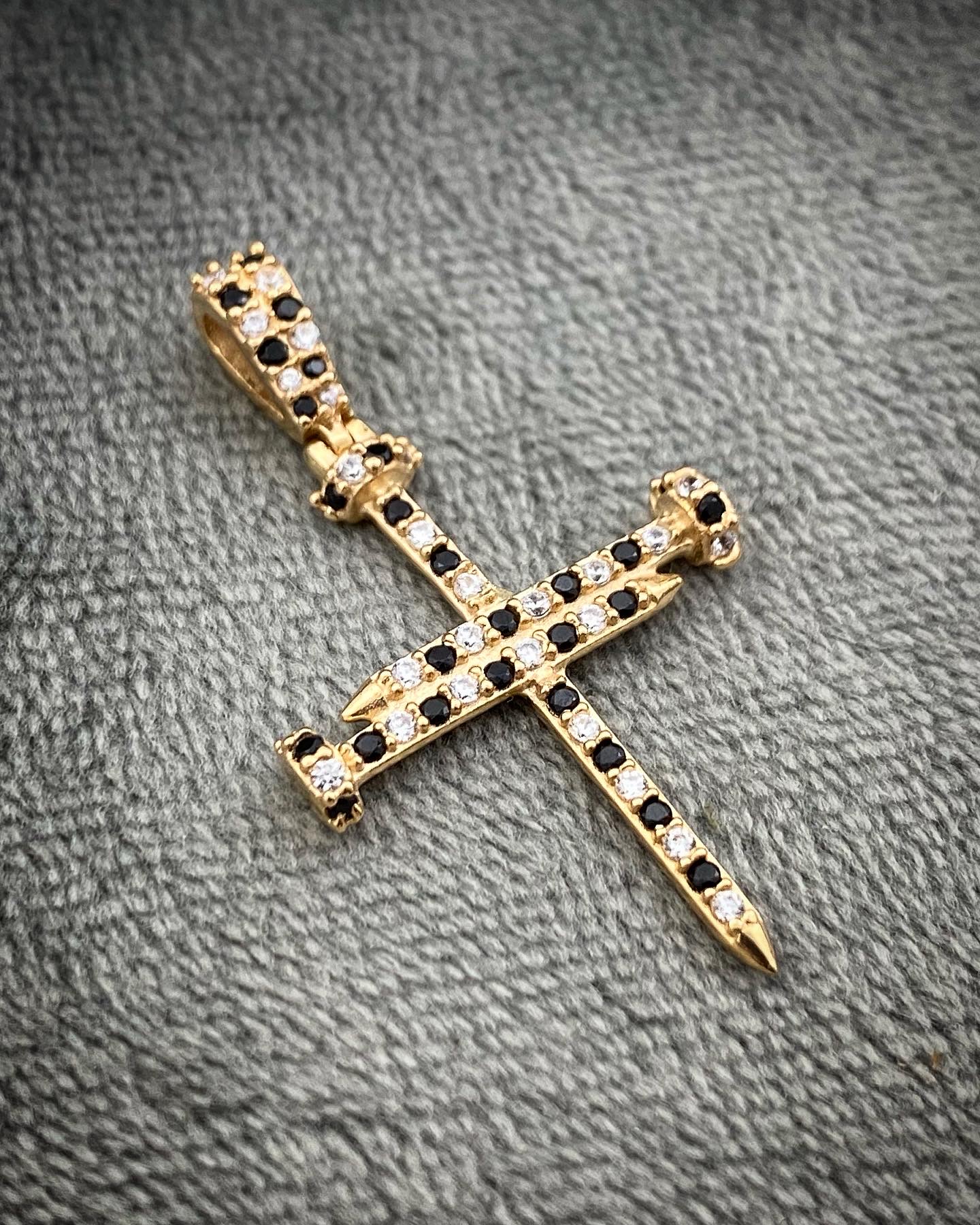 Dije De Cruz Clavo Con Swarovski Blanco Y Negro