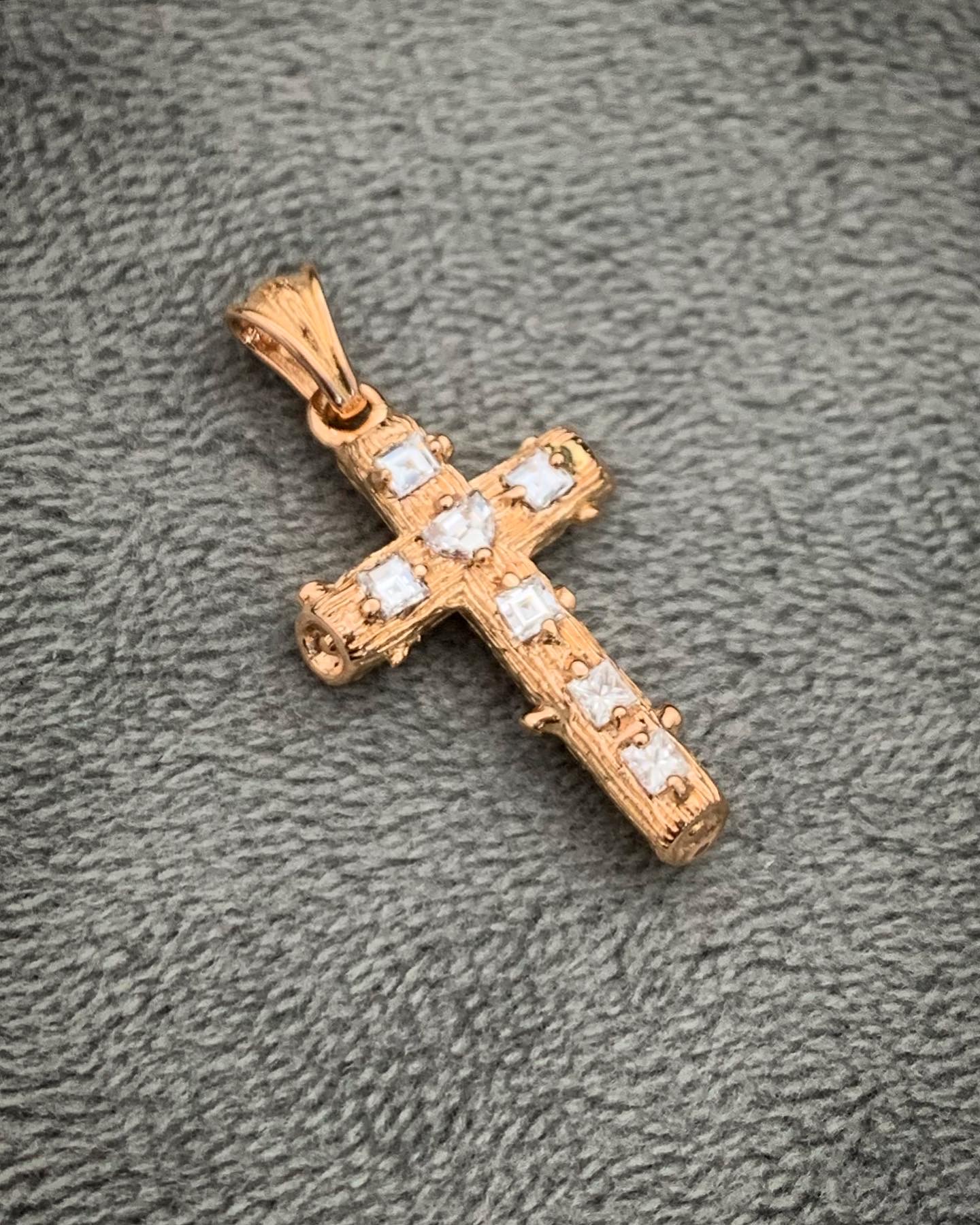 Dije De Cruz Con Diamantes Blancos 41 Pts Oro Rosa 18K 2.85 gr 3.0 cm