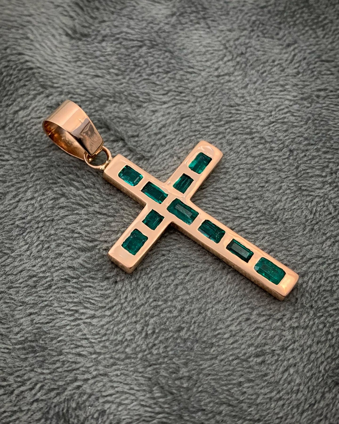 Inicio / Joyeria con Piedras Preciosas / Dijes con Piedras Preciosas / Dije de Cruz con Esmeraldas (100pts) en Oro Rosado 18K 6.05gr