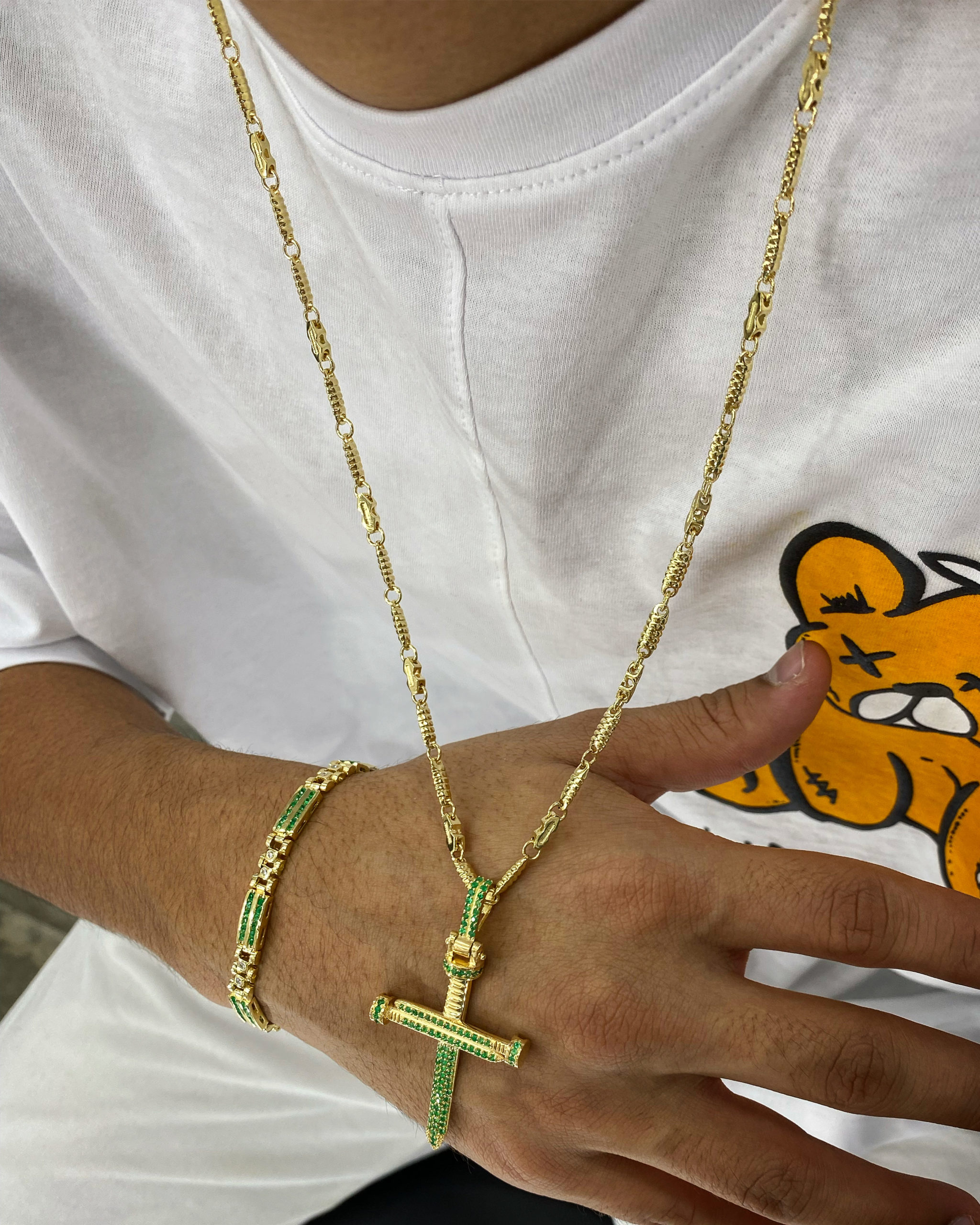 Dije De Cruz Con Esmeraldas 103 pts