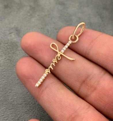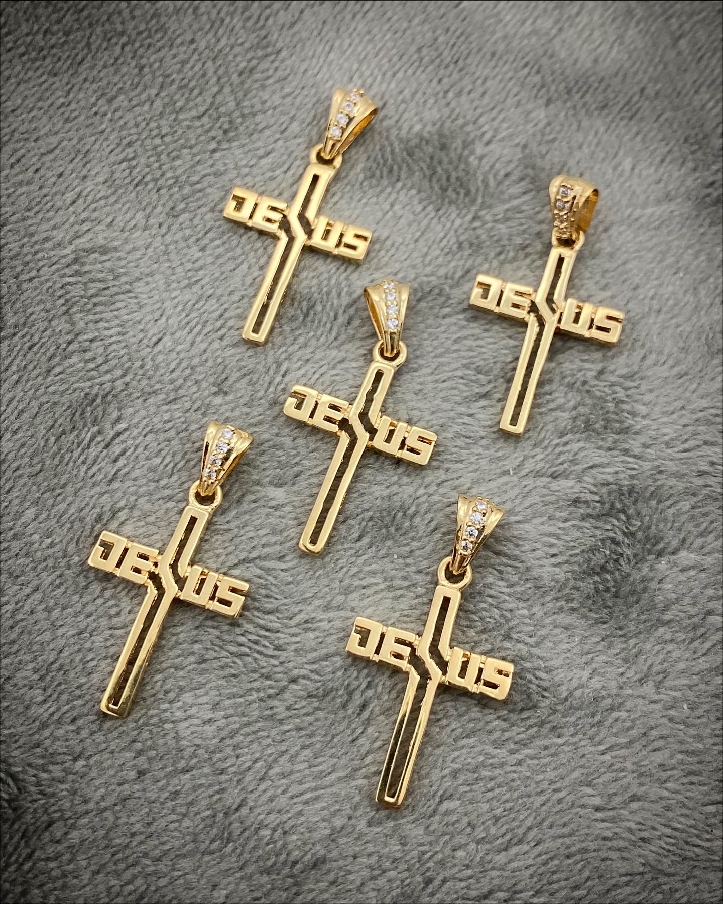 Inicio / Dije / Dijes Casting / Dije De Cruz De Jesús Con Swarovski Oro Amarillo 18k 1.0gr 2.5cm