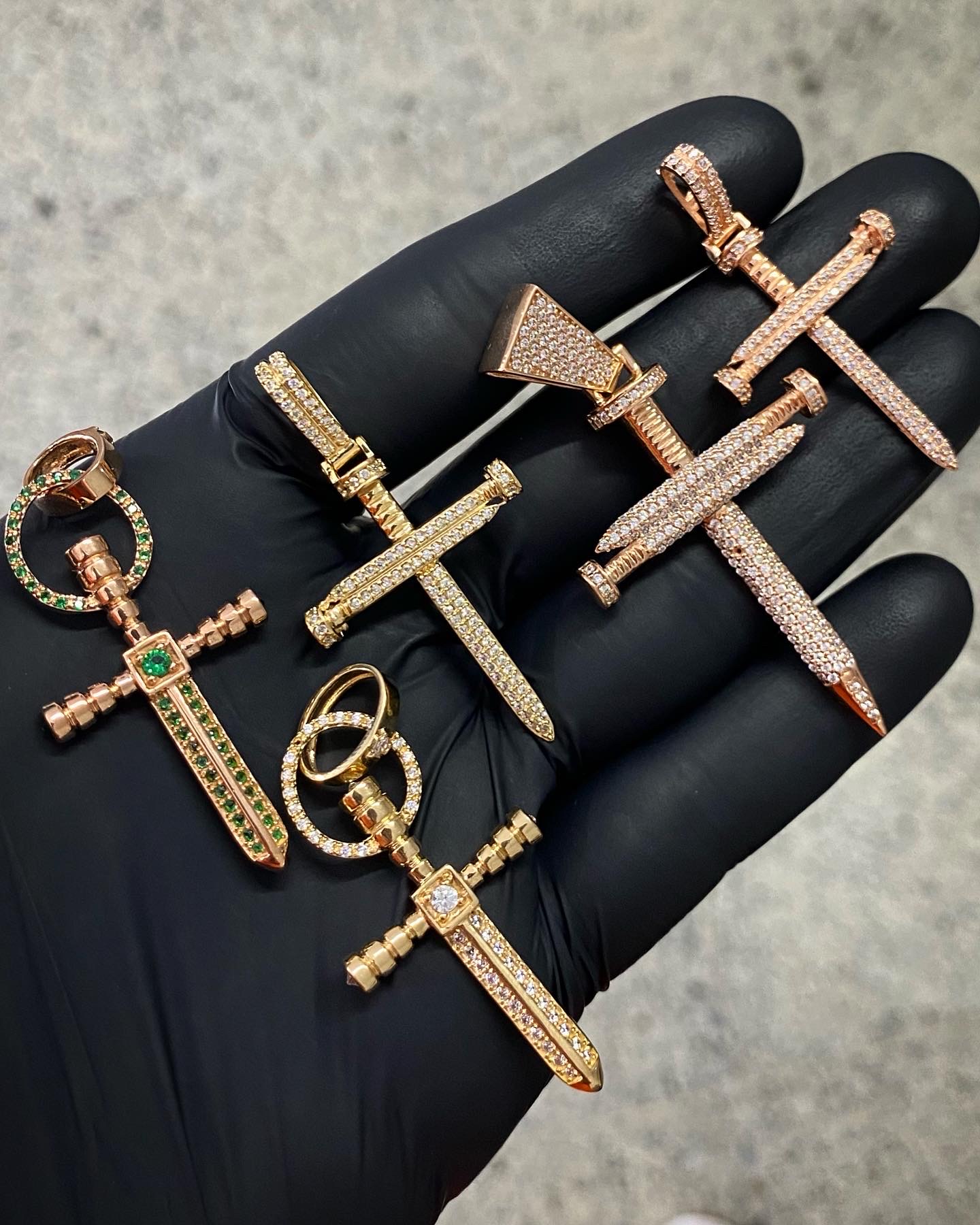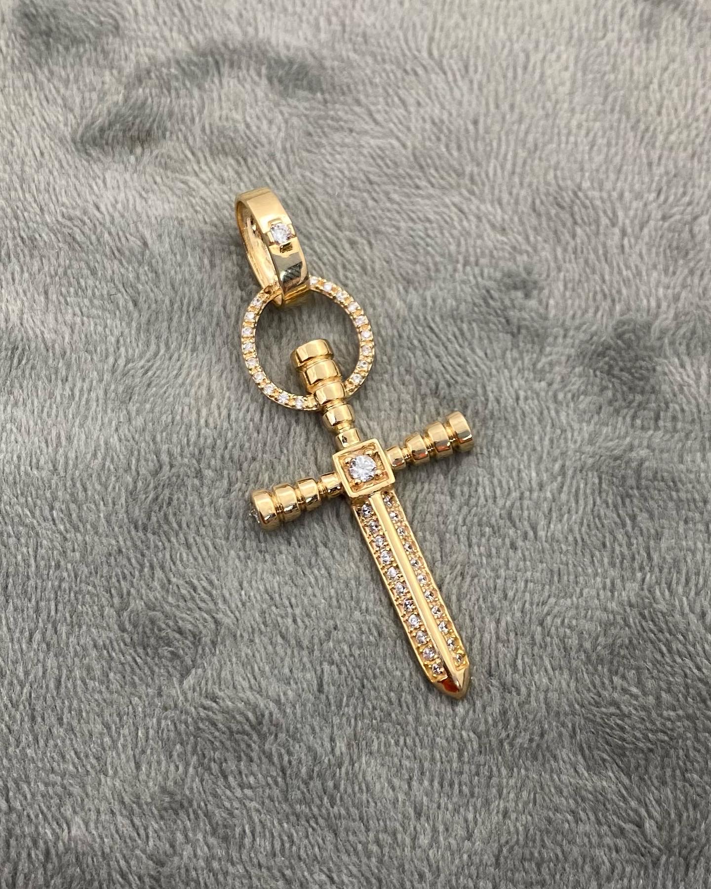 Dije De Cruz Espada Con Swarovski Blancos