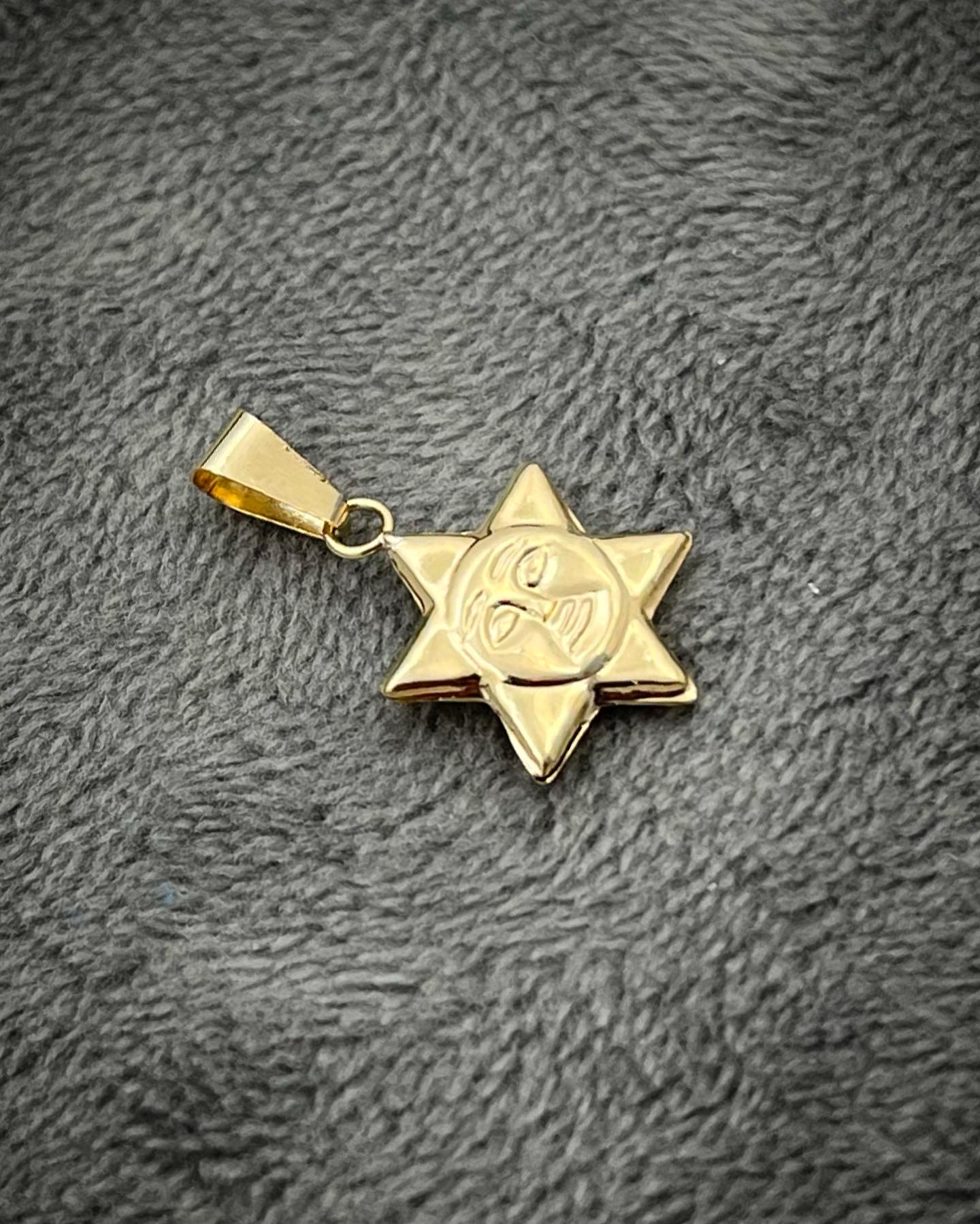 Hermoso Dije de estrella con cara en Oro Amarillo 18K 0.65gr