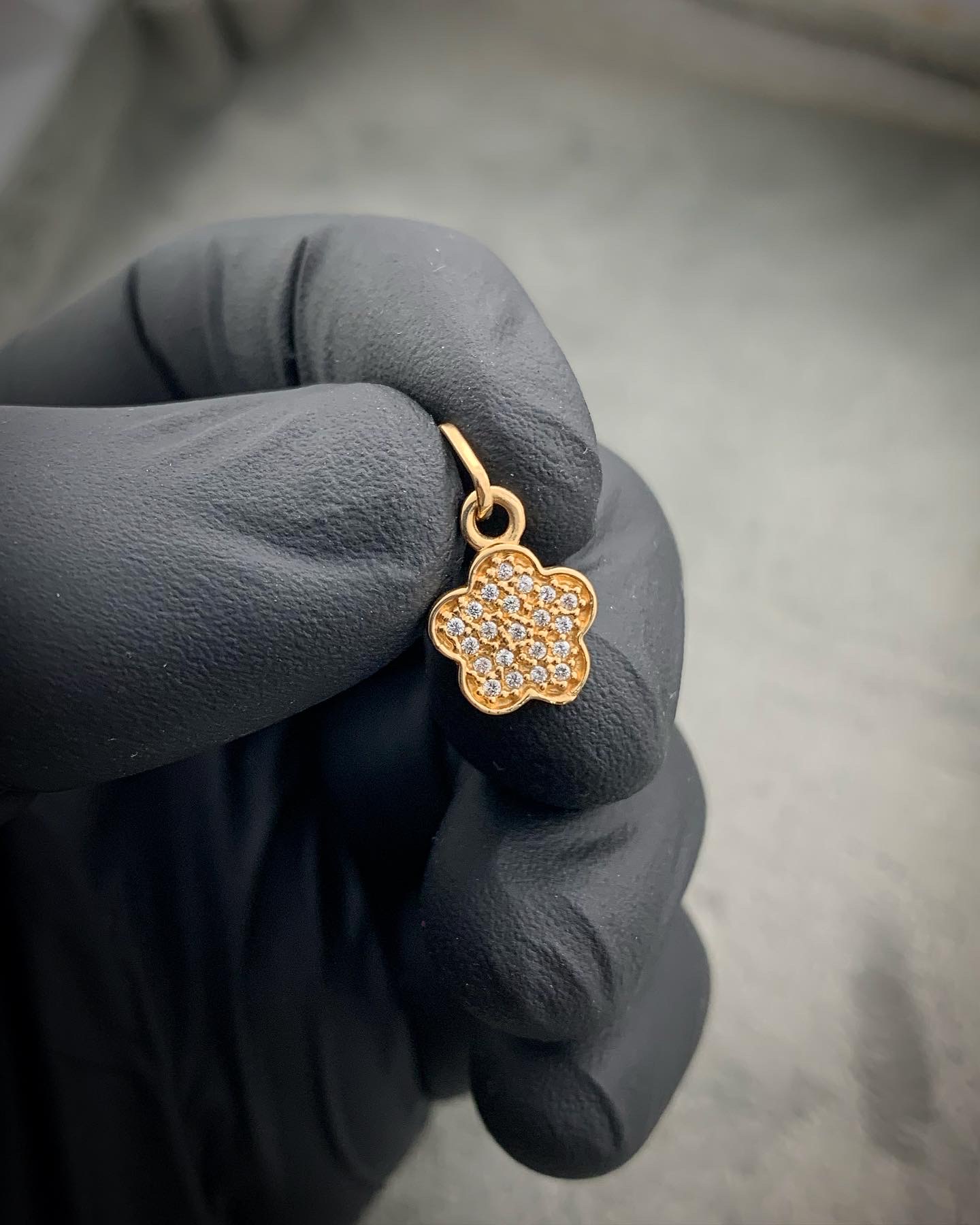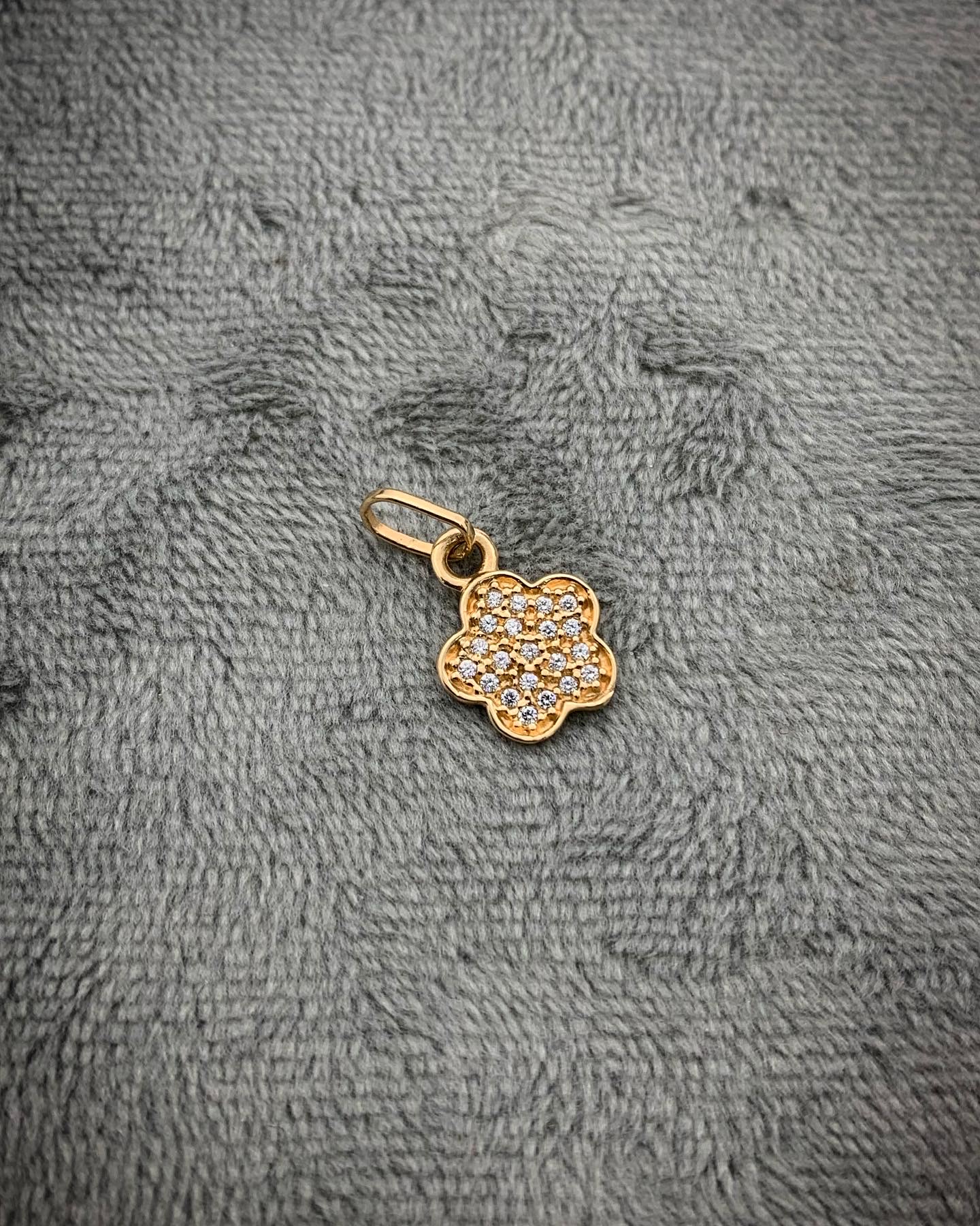 Dije De Flor Con Swarovski Blanco Oro Amarillo 18k 0.85gr 1.5 cm