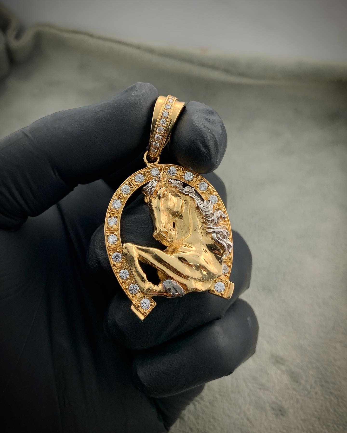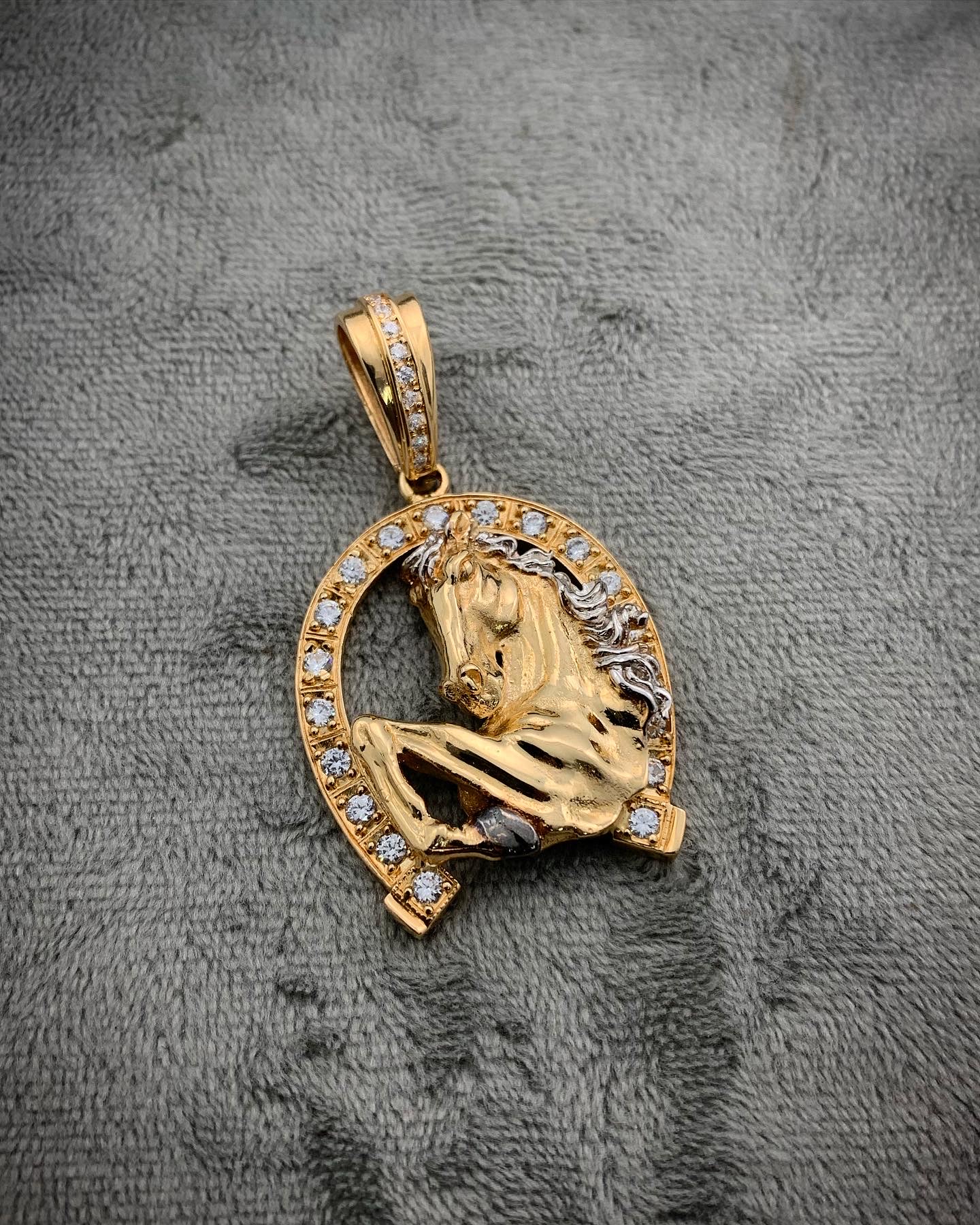 Dije De Herradura De Caballo Con Swarovski Oro Amarillo 18k 12.6gr 5 cm