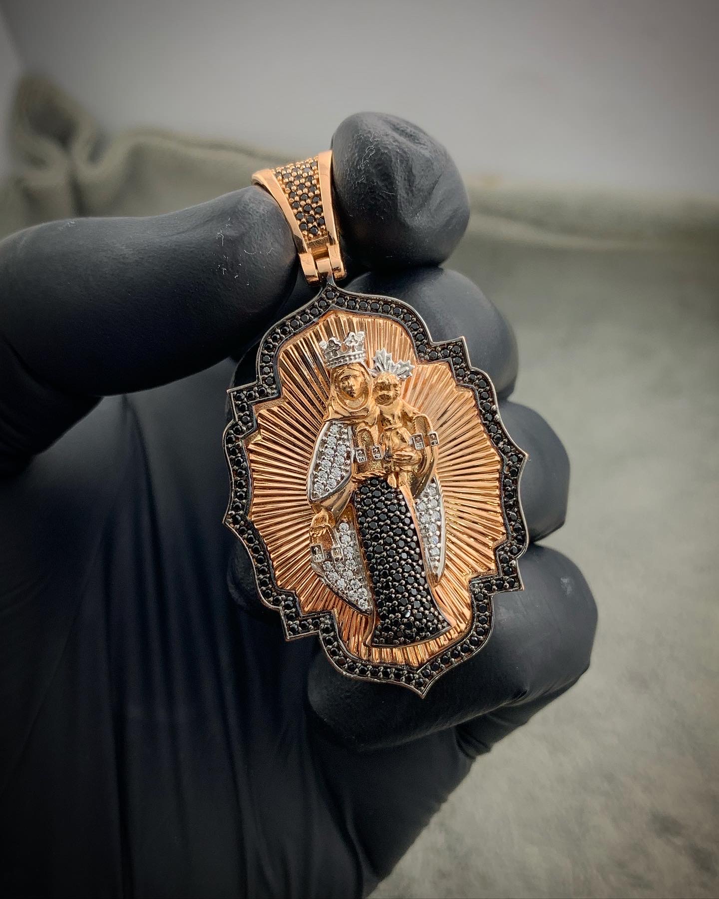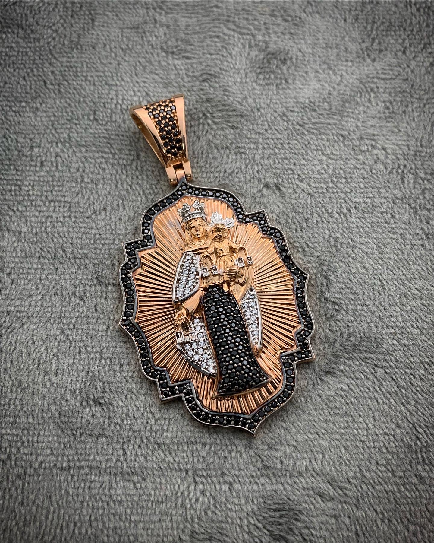 Dije De La Virgen Del Carmen Con Swarovski Negro Y Blanco
