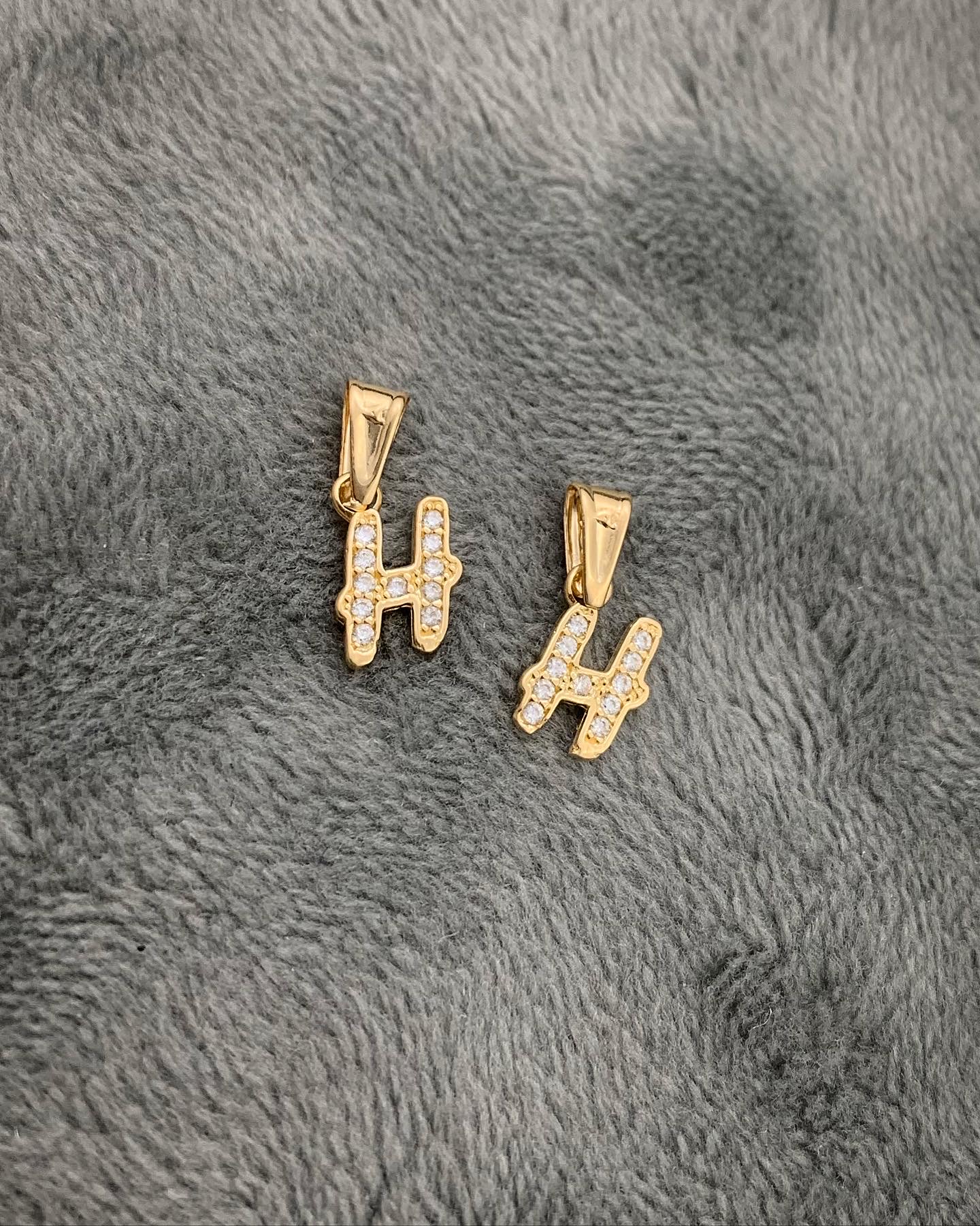 Hermoso Dije con la Letras inicial H en Oro 18K Con Swarovskis.