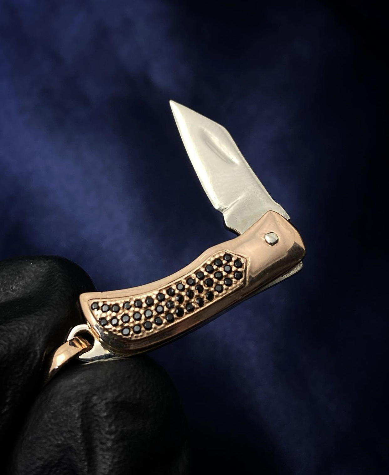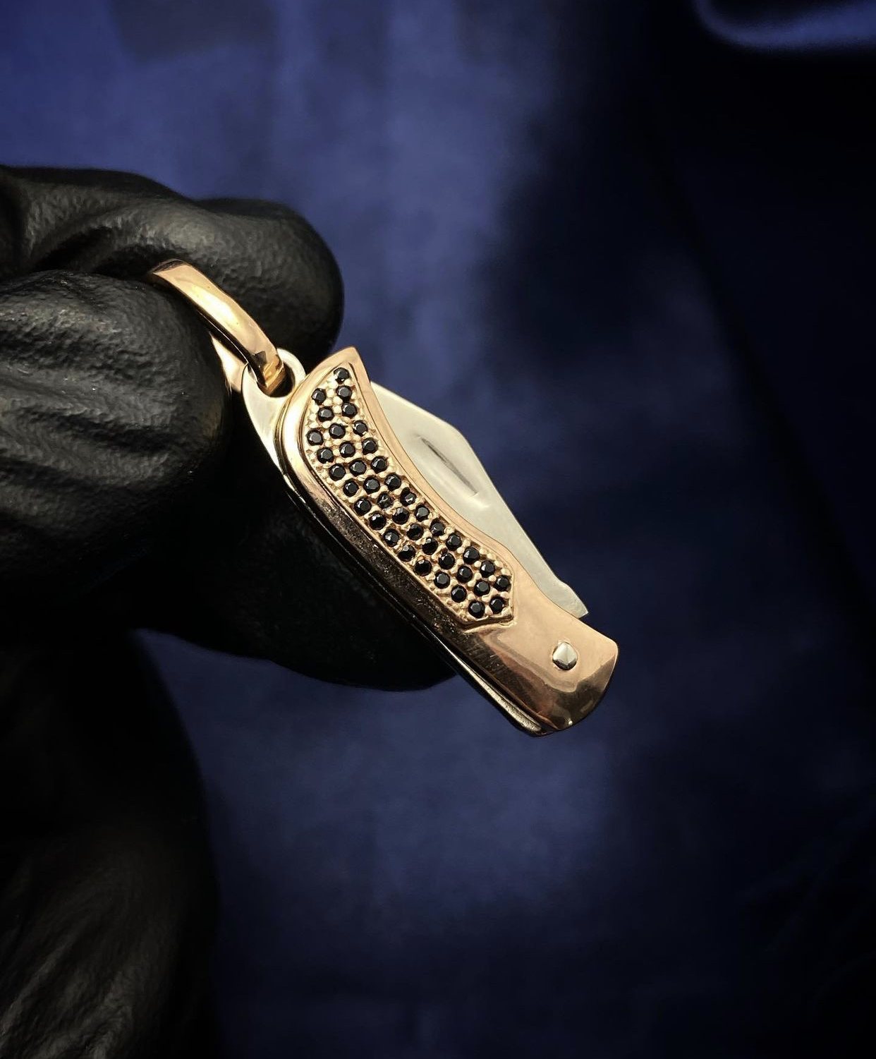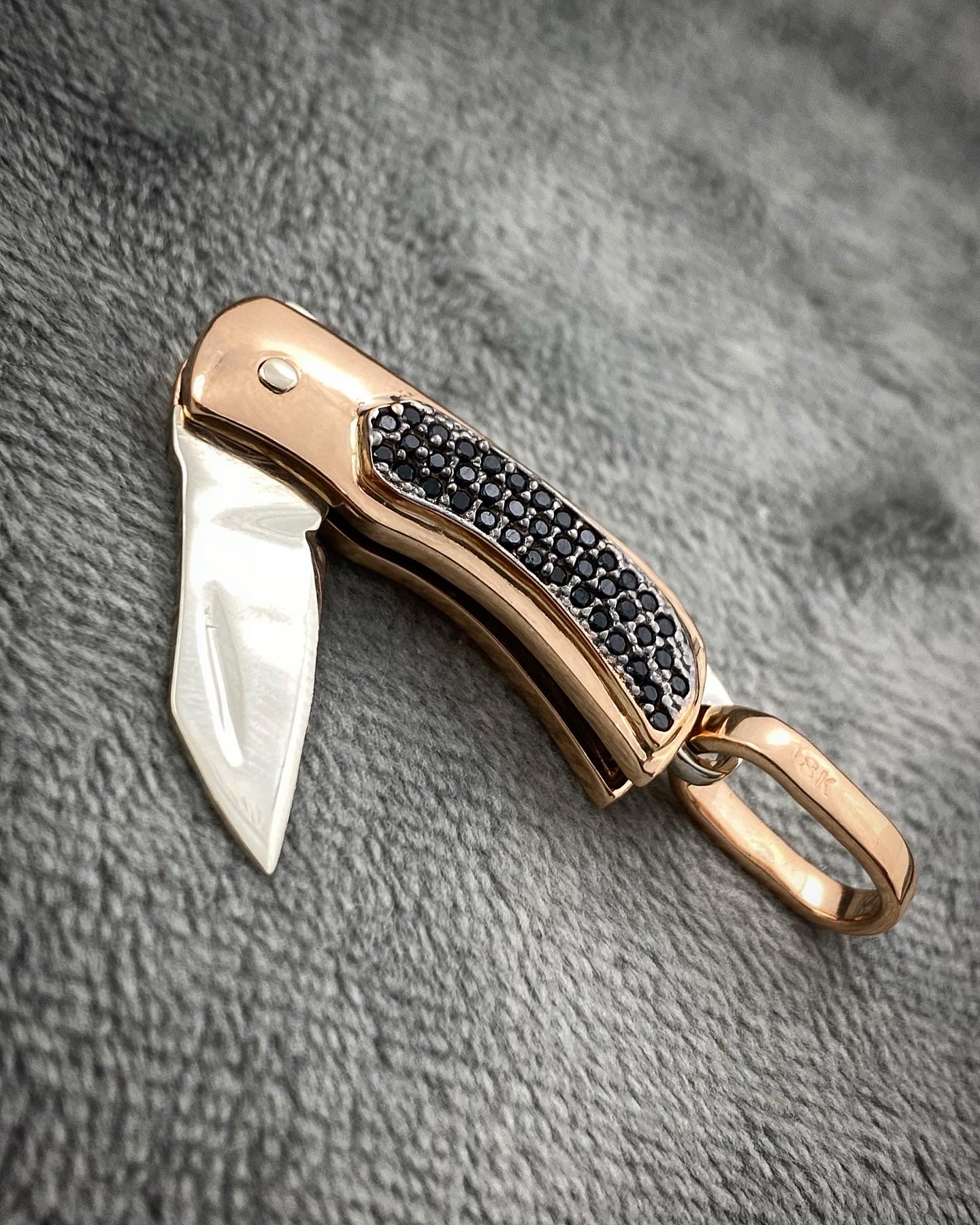 Dije De Navaja Con Swarovski Oro Rosa Y Blanco 18K 750 8.6 gr 5.5 cm