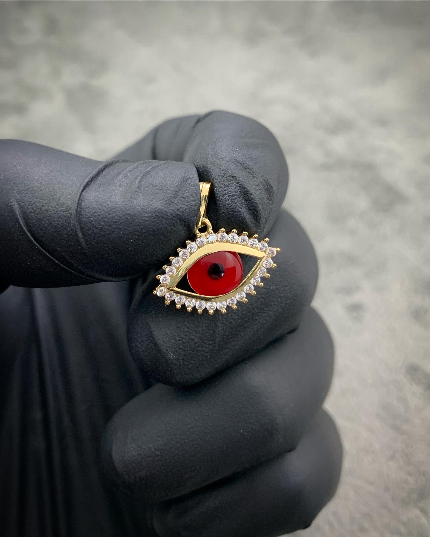 Dije De Ojo Con Swarovski Blanco Y Rojo