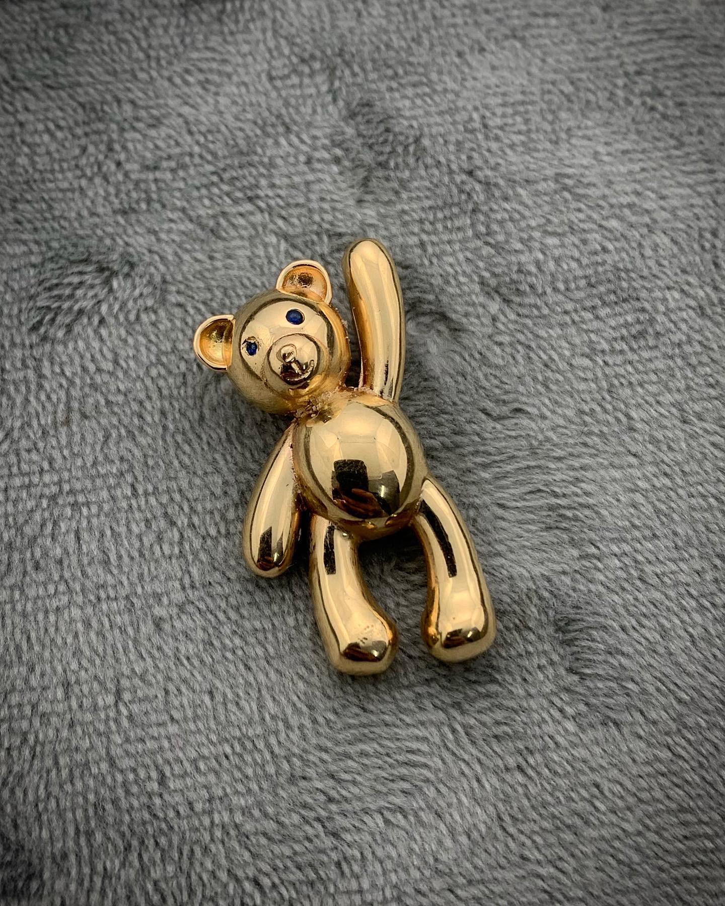 Dije De Oso Con Swarovski Azul Oro Amarillo 18k 750 8.3gr 3cm