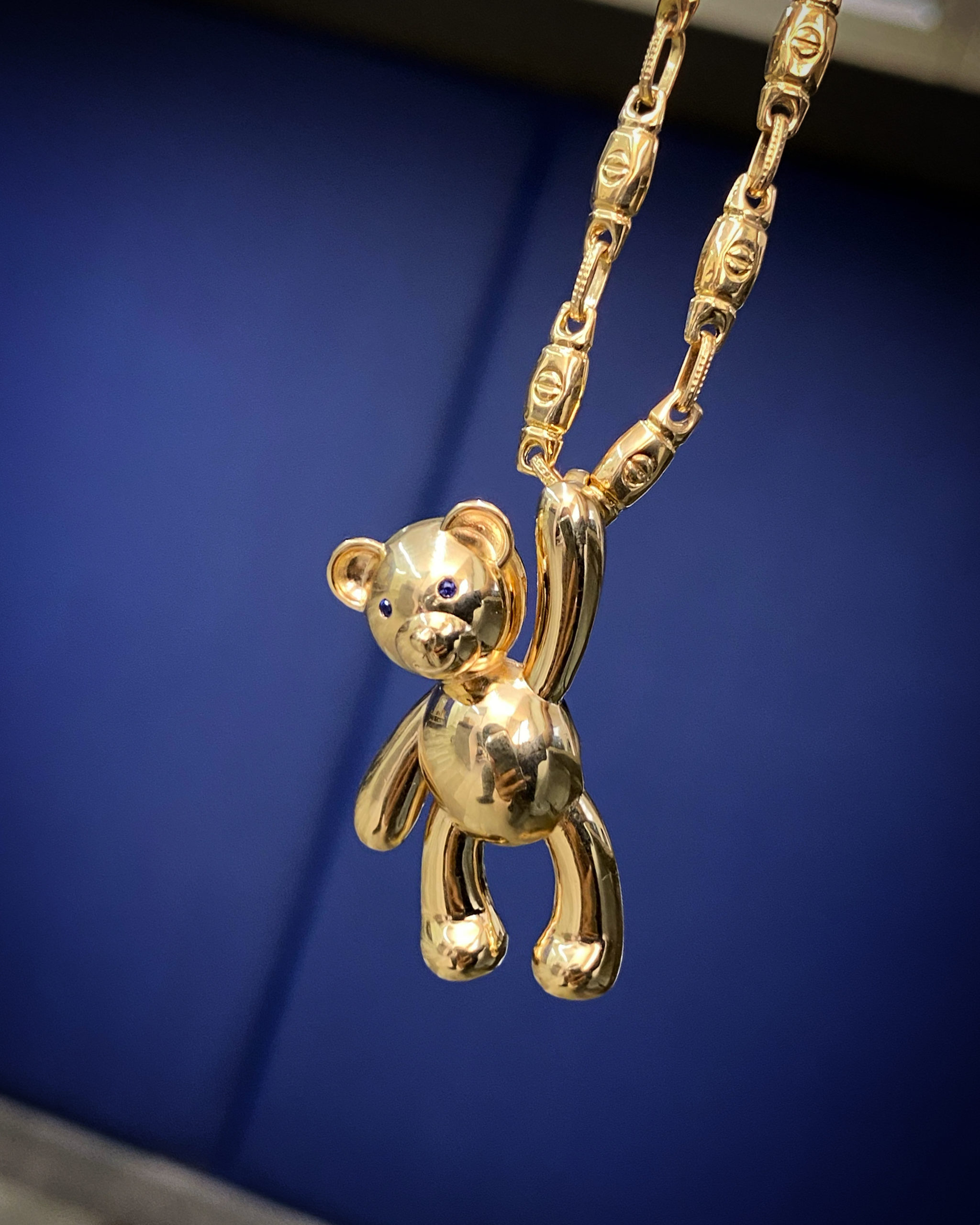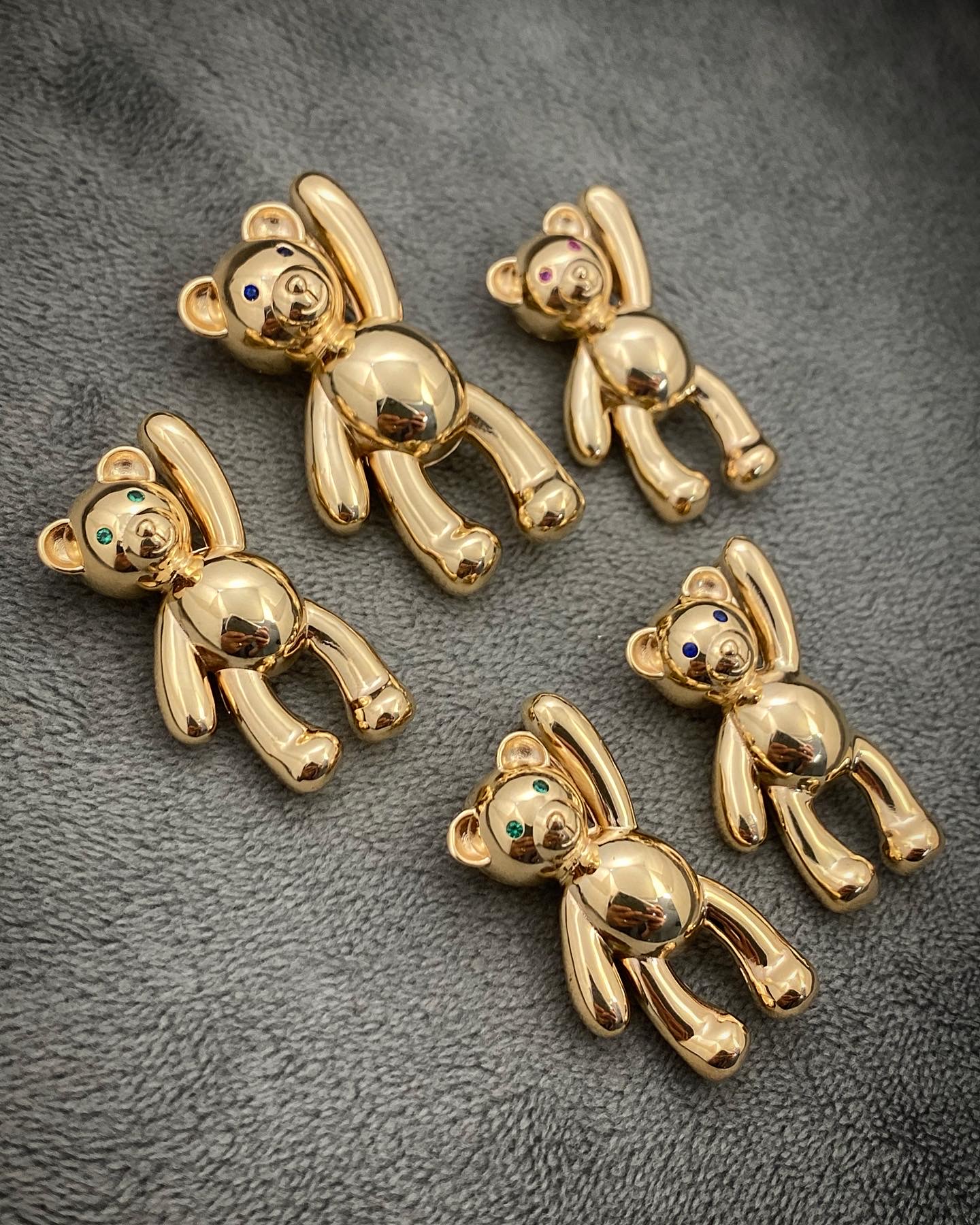 Dije De Oso Con Swarovski Azul Oro Amarillo 18K 750 8.8 gr 3.1 cm