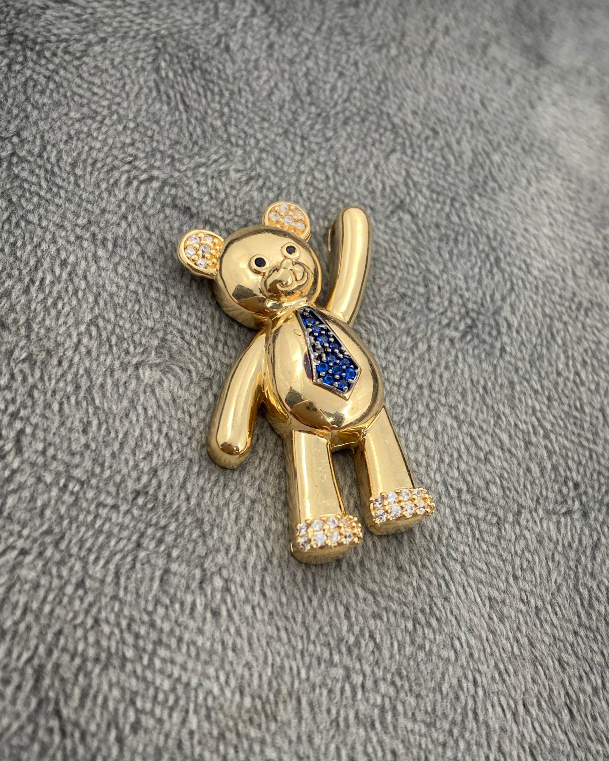 Dije De Oso Con Swarovski Blanco Y Azul Oro Amarillo 18k 5.0gr 3.1cm