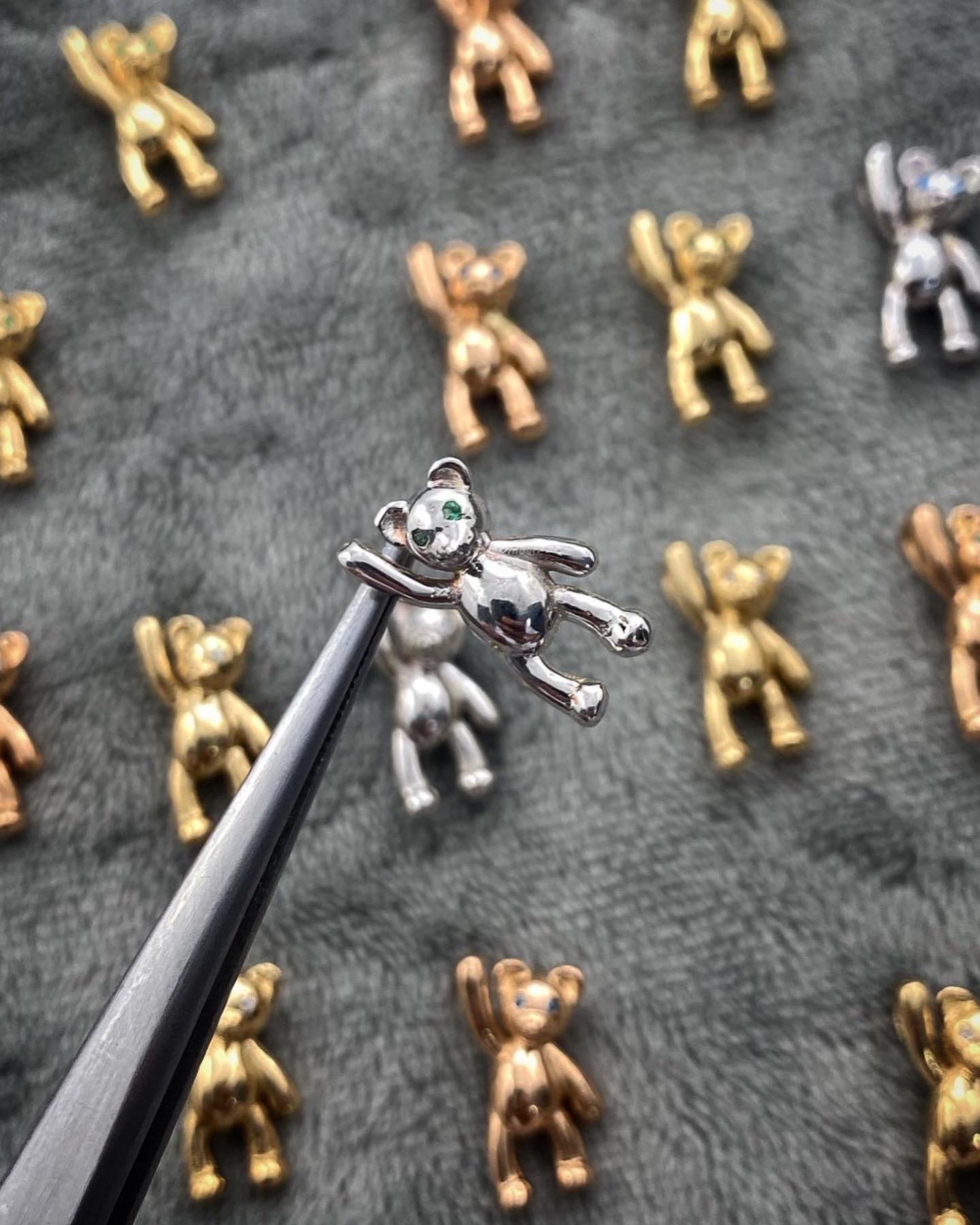 Dije De Oso Con Swarovski Verde Oro Blanco 18k 1.2gr 1.5cm