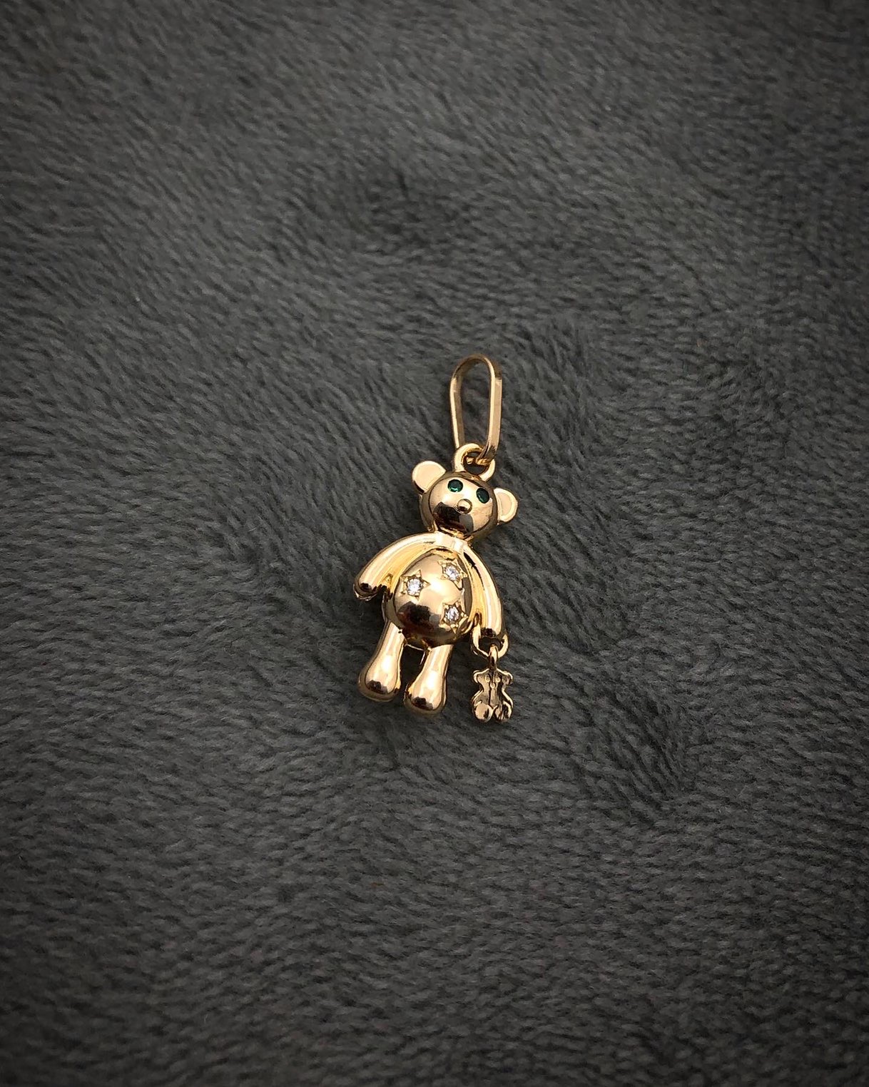 Espectacular Dije De Oso Con TH Con Swarovski Verdes Y Blancos