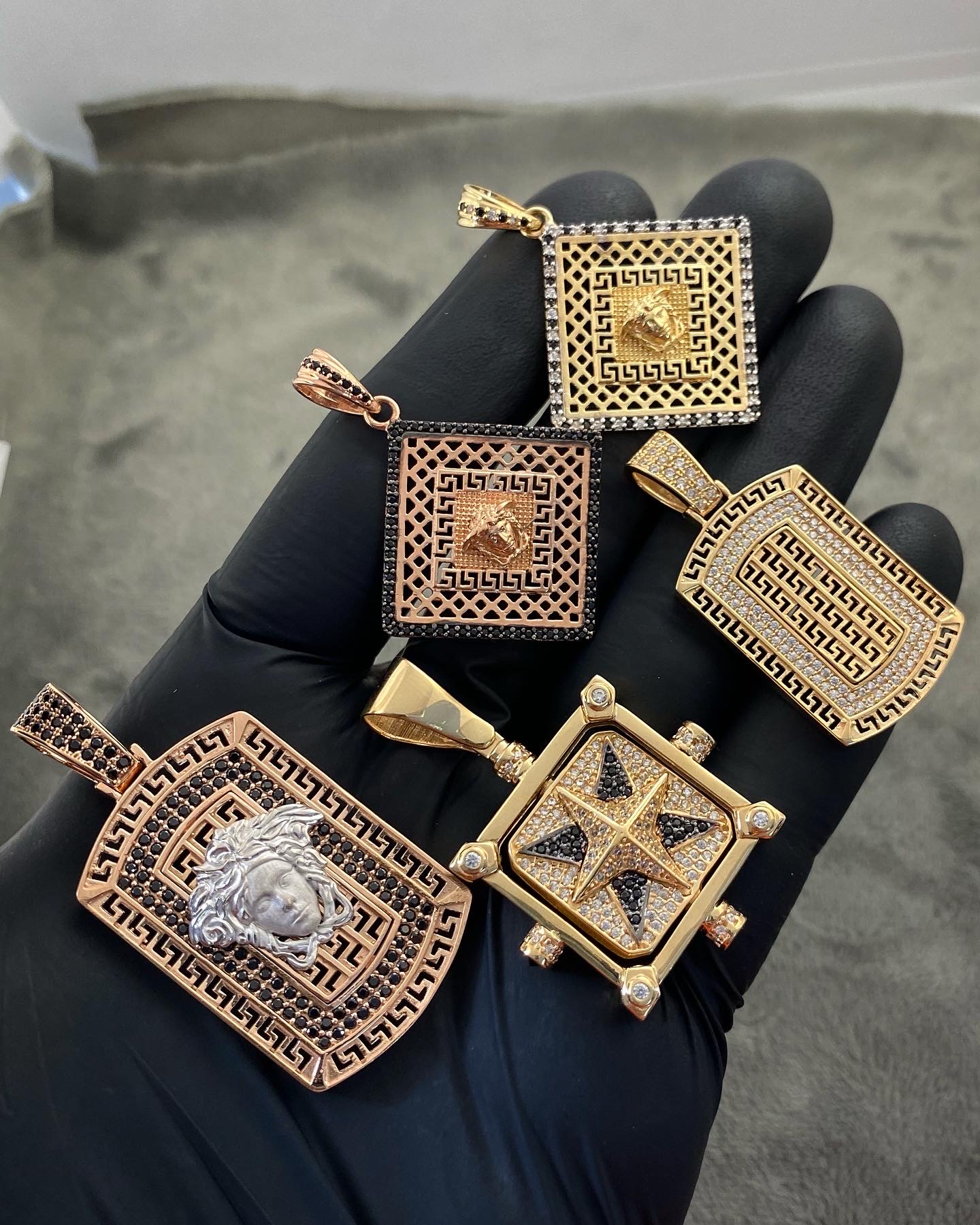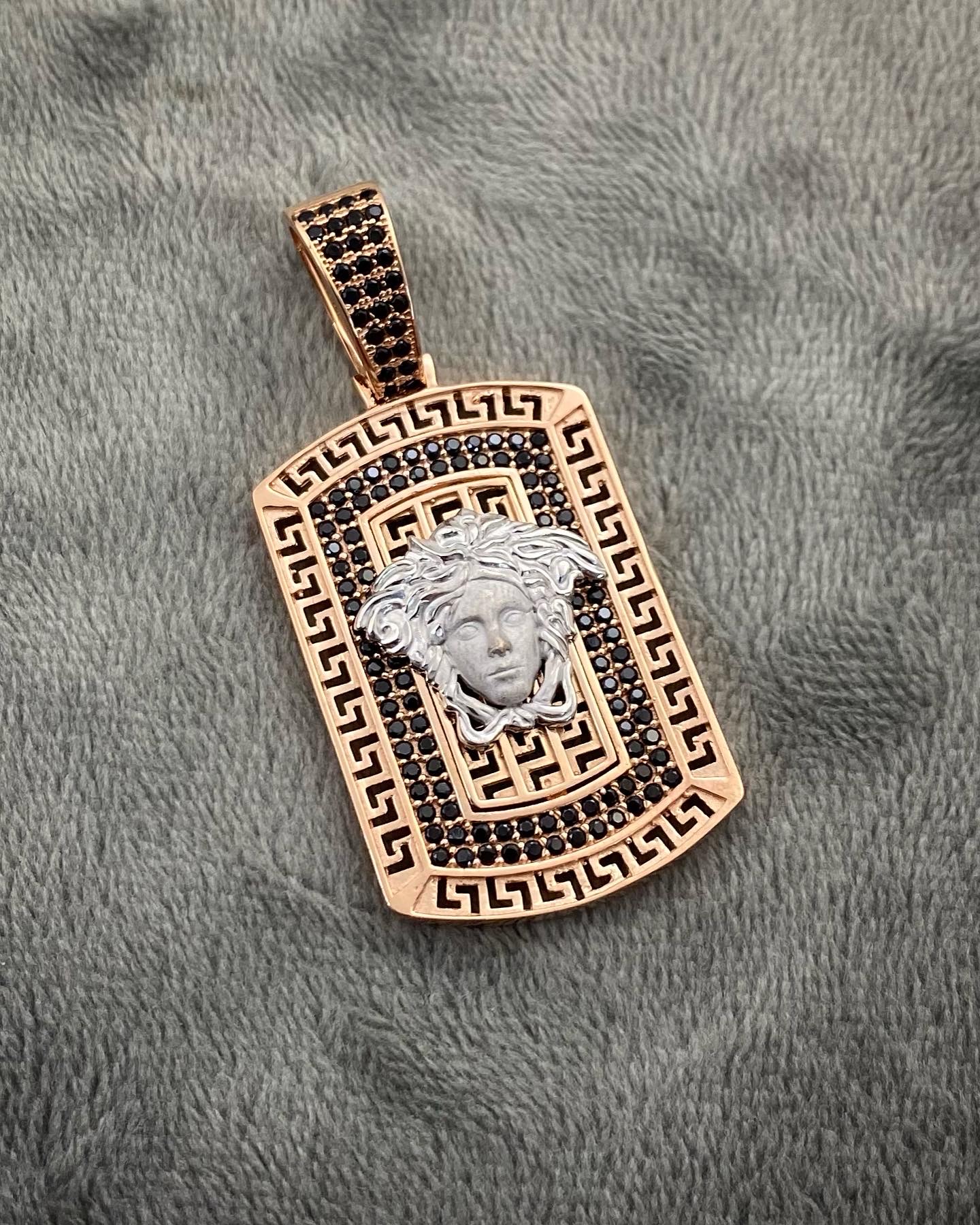Dije De Placa Medusa Con Swarovski Oro Rosado Y Blanco 18K 12.9 gr 5.0 cm