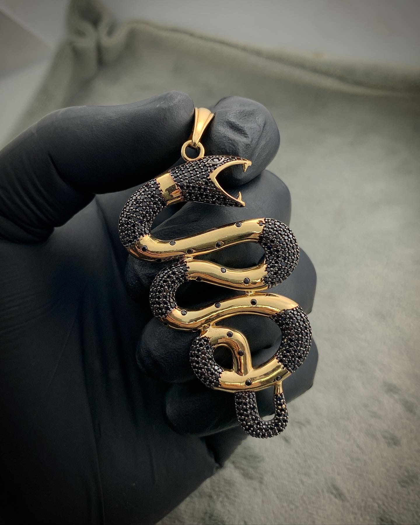 Inicio / Dije / Dijes Casting / Dije De Serpiente Con Swarovski Negro Oro Amarillo 18k 12.1gr 7.3cm